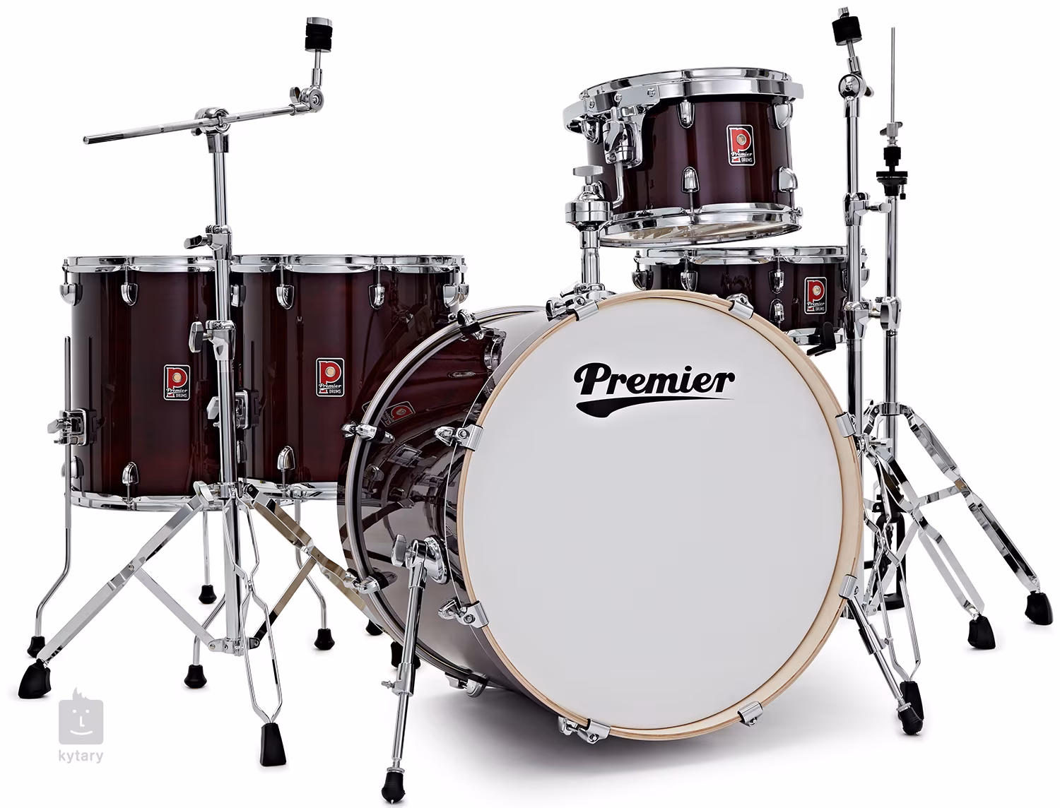 Der ästhetische und funktionale Eindruck wird durch die auffällige Hardware unterstrichen, die von historischen Premier-Modellen inspiriert ist. Die dreifachen Stahlfelgen sorgen für einen festen Anschlag und einen großartigen Cross-Stick-Sound, was Spieler in anspruchsvolleren Stilrichtungen zu schätzen wissen. Die direkt an der großen Trommel befestigten Rack-Toms sorgen zusätzlich für Stabilität beim dynamischen Spiel.