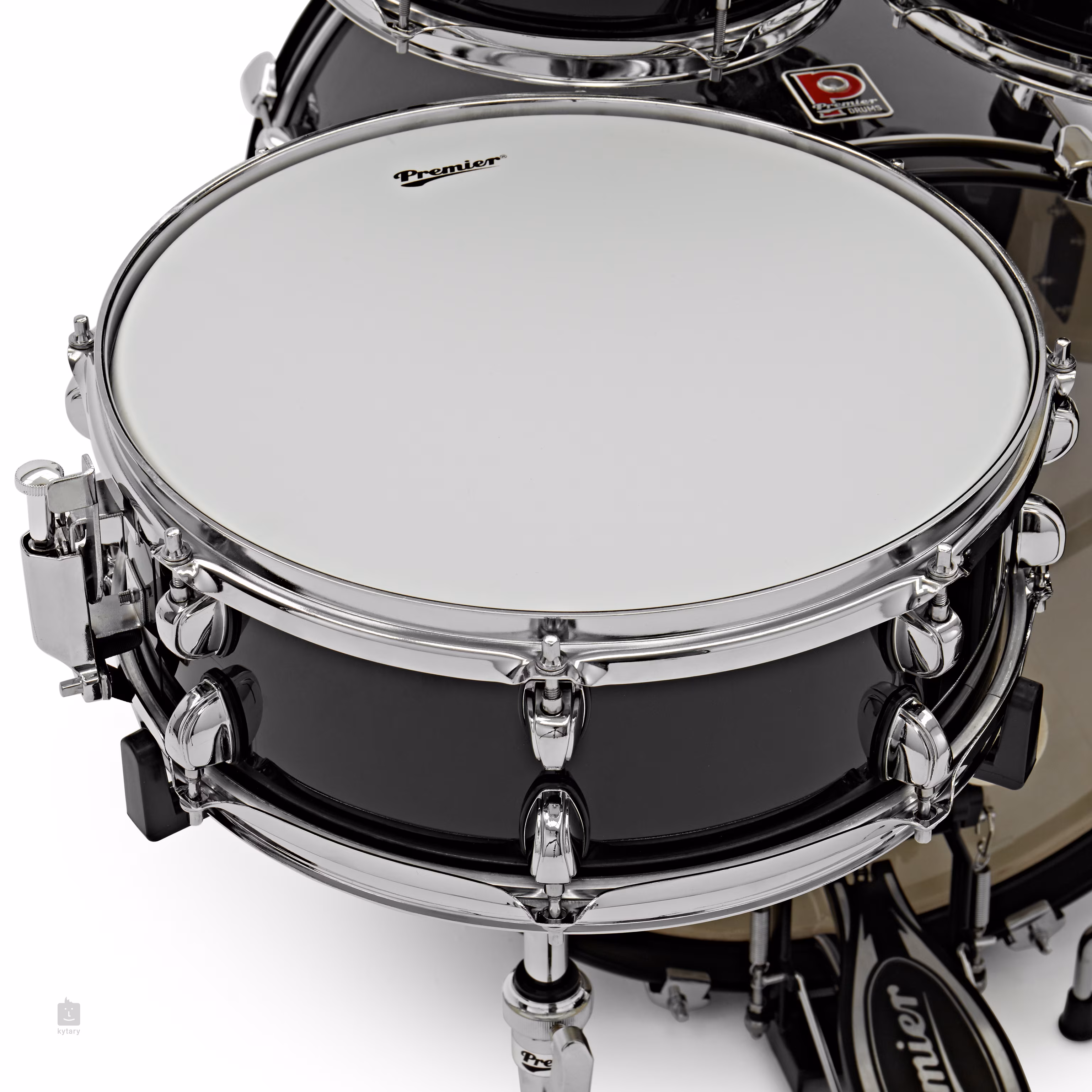 Das Design des Sets wird durch eine strapazierfähige PVC-Oberfläche und flache Premier Low-Mass Lugs ergänzt, die für eine stabile Stimmung und ein elegantes Aussehen sorgen. Die dreifachen Stahlfelgen bieten einen stabilen Rahmen und einen klaren Rimshot-Klang, den jeder Schlagzeuger bei Live-Auftritten und beim Üben zu schätzen weiß.