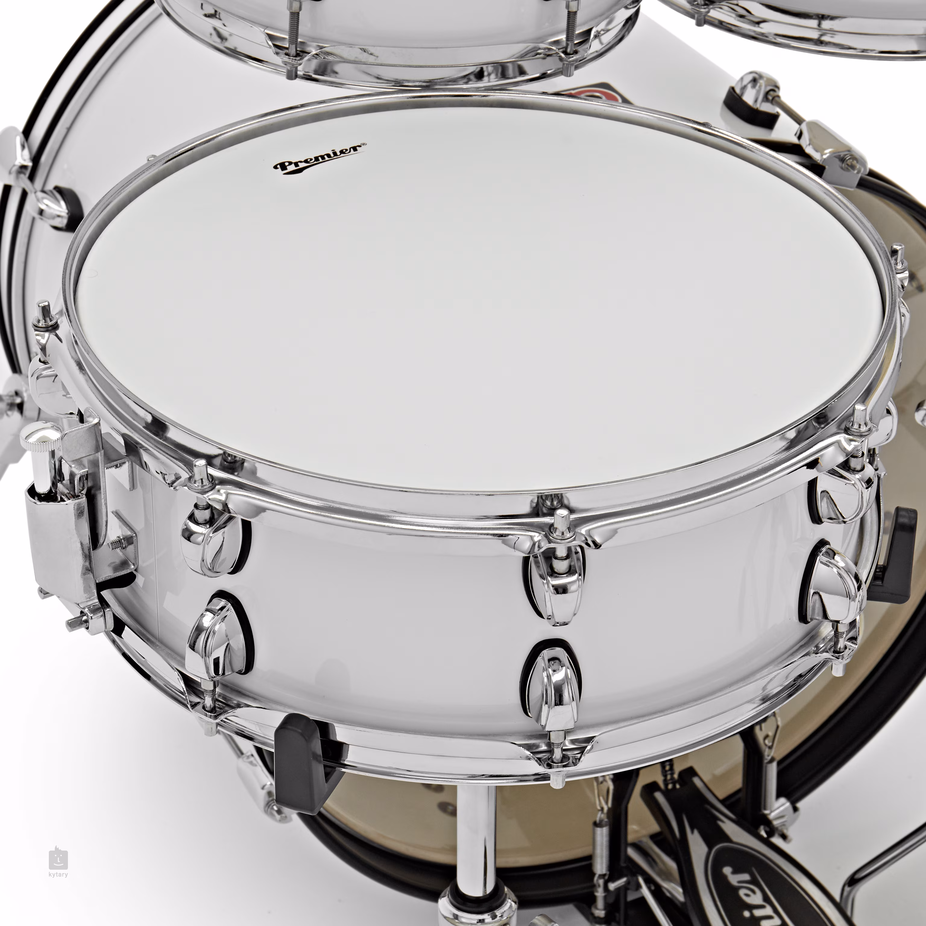Das Premier Low-Mass Lugs-System sorgt für zuverlässige Stimmung und langfristige Stabilität, während die dreifach geflanschten Stahlreifen (Triple Flanged Steel Hoops) für scharfe Rimshots und eine bessere Tonkontrolle sorgen. Darüber hinaus verfügt das gesamte Set über eine strapazierfähige PVC-Beschichtung, die die Kessel vor Beschädigungen schützt und ihnen ein elegantes Aussehen verleiht.