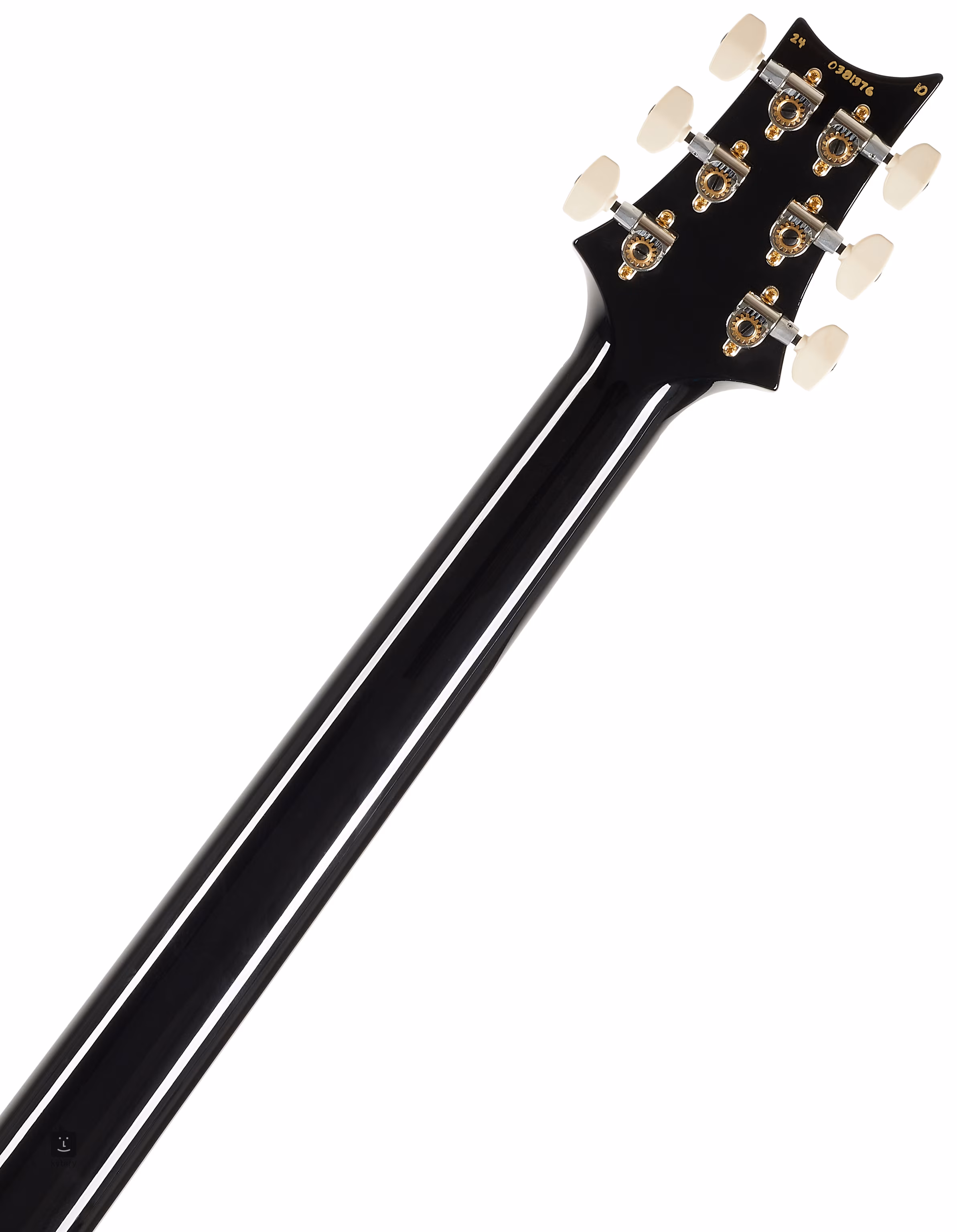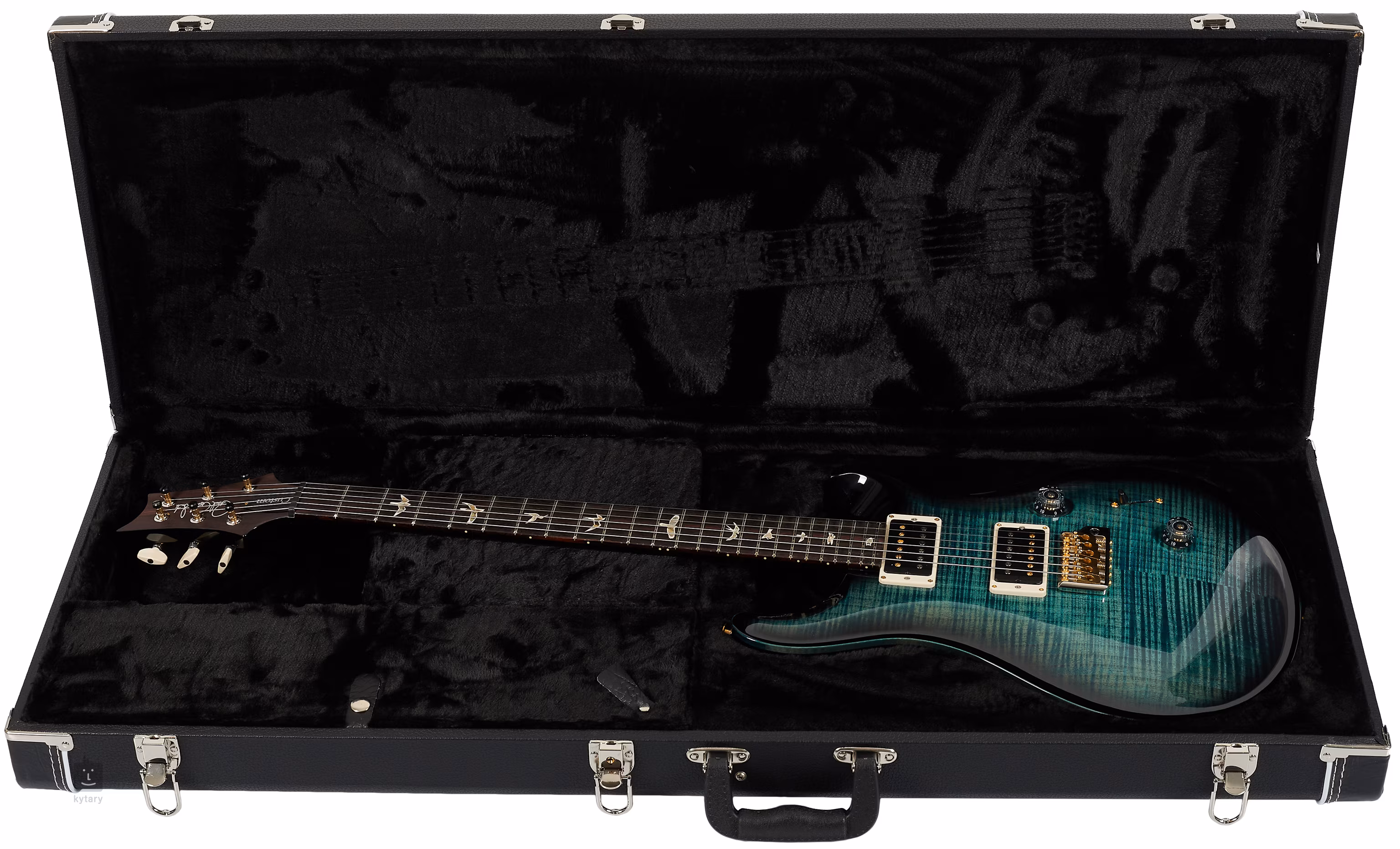 Das Modell Custom 24 10 Top Cobalt Smokeburst bietet eine Kombination aus einer Ahorndecke mit einem exklusiven "dead spot-free"-Muster (10 Top) und einem ergonomisch geformten Mahagonikorpus mit dem typischen PRS-Double-Cutaway. Der Mahagoni-Hals mit Pattern Thin-Profil ist auf ein Palisander-Griffbrett geleimt, das mit luxuriösen Perlmutt-Positionsmarkierungen in Form von Vogelsilhouetten versehen ist.