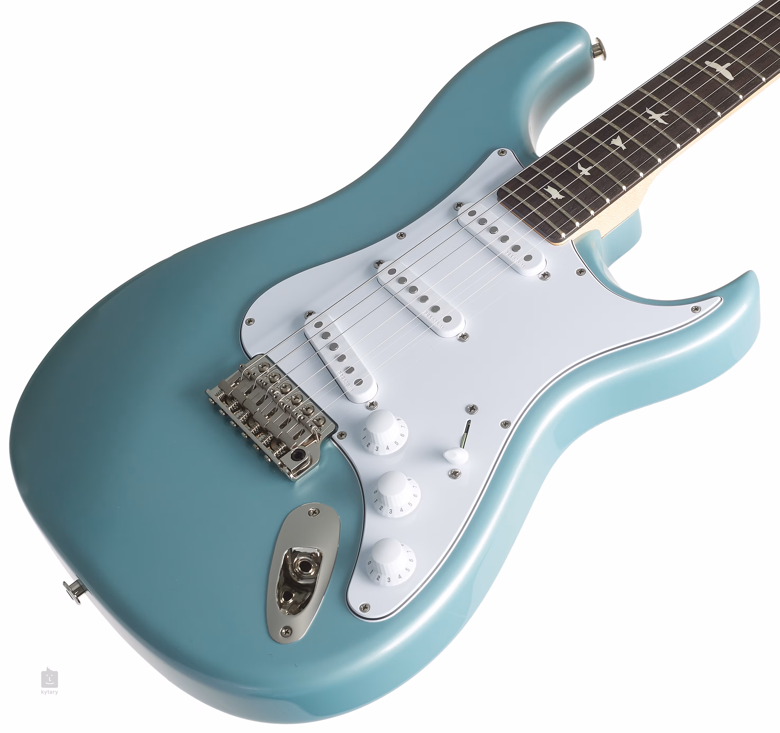Drei 635JM Single-Coil-Tonabnehmer verleihen der Gitarre einen runden, vollen Klang mit schön singenden Höhen. Sein Charakter lässt sich mit zwei Tonblende-Potentiometern und einem Lautstärkeregler einstellen. Die Saiten sind in einem Stahltremolo im Vintage-Design montiert, das mit einem PRS-Tremolohebel und Gen III-Schrauben (Messerschneide) ausgestattet ist. Die Stimmstabilität wird durch eine abschließbare Mechanik im Vintage-Stil gewährleistet. Zu den weiteren Besonderheiten des Instruments gehören eine Kopfplatte mit dem Markenzeichen von PRS, einem Griffbrett aus Knochen oder einer signierten Halsplatte. Ein weißes Schlagbrett schützt den Lack des Instruments vor Kratzern, die durch Plektrumspiel verursacht werden.