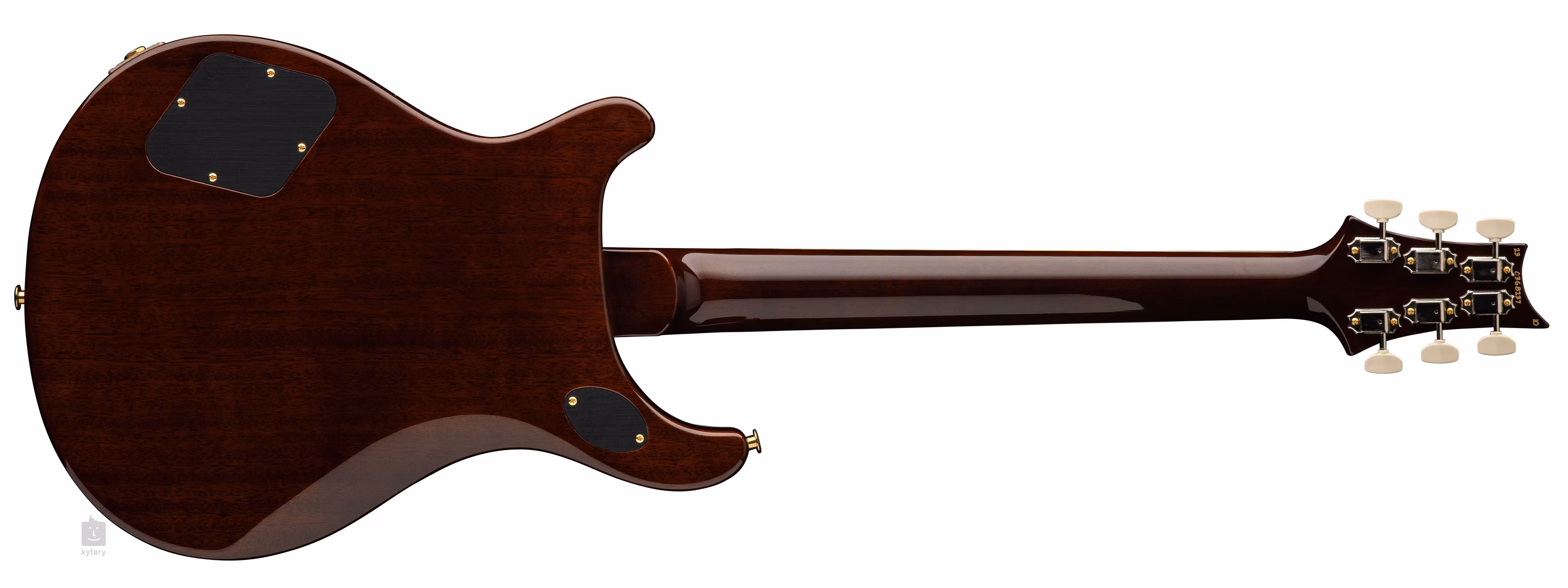 Eine stabile Stimmung wird durch die Befestigung der Saiten über einen Knochen-Nullbund in PRS-Vintage-Mechanik und eine zweiteilige Kopfplatte aus Zink und Messing gewährleistet. Die Stimmwirbel (Flügelknöpfe) sind leichter als die Metallmechaniken älterer Modelle und lassen das Instrument länger nachschwingen.