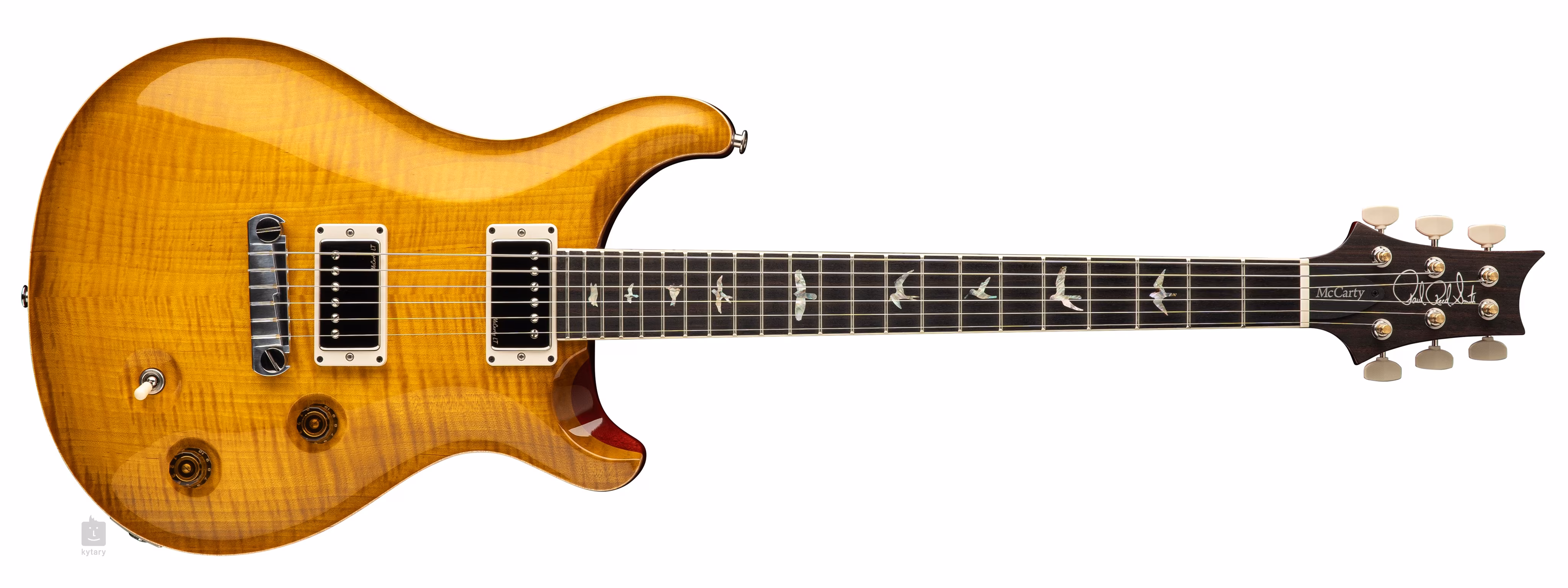 Die McCarty McCarty Sunburst E-Gitarre ist ein Instrument mit der Seele von Vintage-Gitarren, traditionellem PRS-Korpusdesign und großartigen Spieleigenschaften. Sie verfügt über einen etwas volleren, ergonomisch geformten Mahagonikorpus mit einem breiteren Boden und einer fein gemaserten Ahorndecke. Auf den Mahagoni-Hals mit Pattern-Profil ist ein Palisander-Griffbrett mit zweiundzwanzig Bünden geleimt. Die Orientierung auf dem Griffbrett wird durch die PRS-typischen Positionsmarker in Form von luxuriösen Vogel-Silhouetten aus Perlmutt erleichtert.