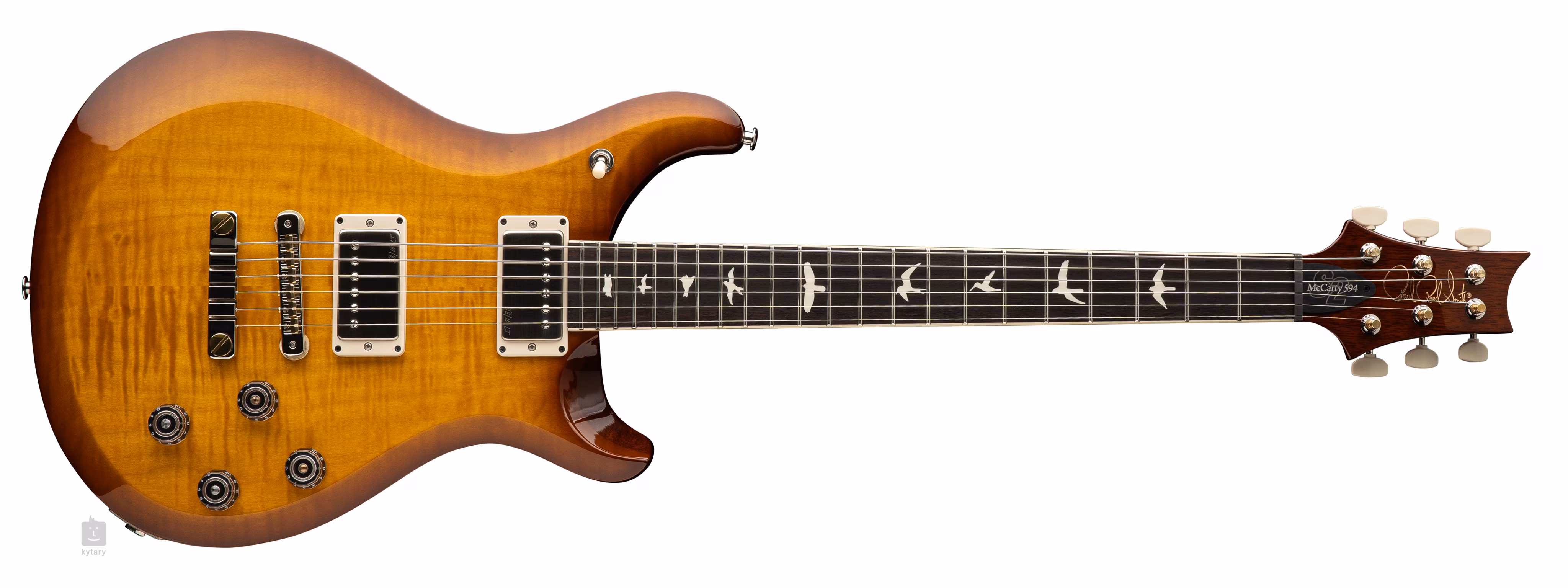 Den Mahagonikorpus der S2 McCarty 594 Honey Gold Burst mit dem charakteristischen PRS-Double-Cut-Design ziert eine Ahorndecke mit einem beeindruckenden Muster, das durch die Glanzlackierung und die gewählte Farbgebung noch betont wird. Dank des breiteren Mahagoni-Bodens hat die Gitarre einen vollen Ton und ein sattes Sustain, während die deutlich abgeschrägten Korpuskanten die allgemeine Spielergonomie fördern.