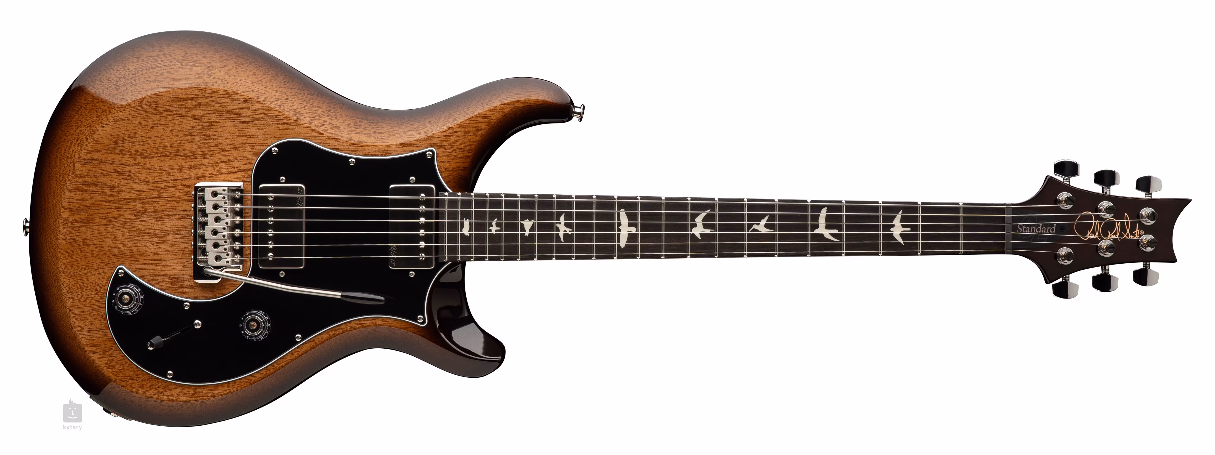 Der Mahagonikorpus der S2 Standard 22 McCarty Tobacco Sunburst Gitarre ist mit einer dünnen Schicht glänzenden Nitrolacks verziert. Ein Palisander-Griffbrett mit zweiundzwanzig Bünden ist auf den Mahagoni-Hals mit Pattern Regular-Profil geleimt. Positionsmarkierungen in Form von Vogel-Silhouetten aus Perlmutt erleichtern die Orientierung auf dem Griffbrett.