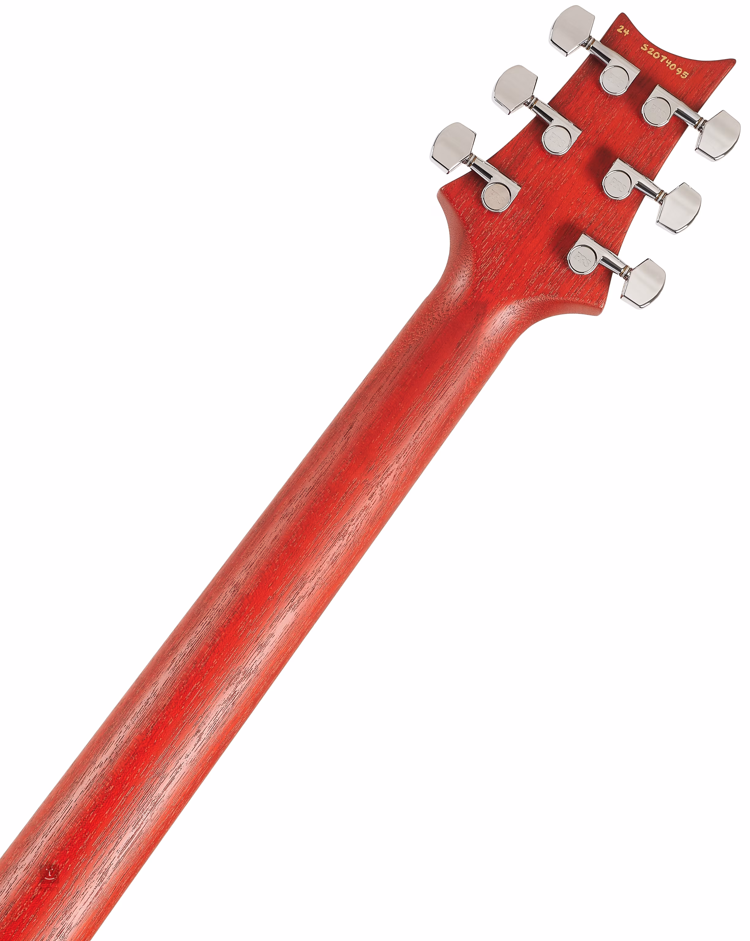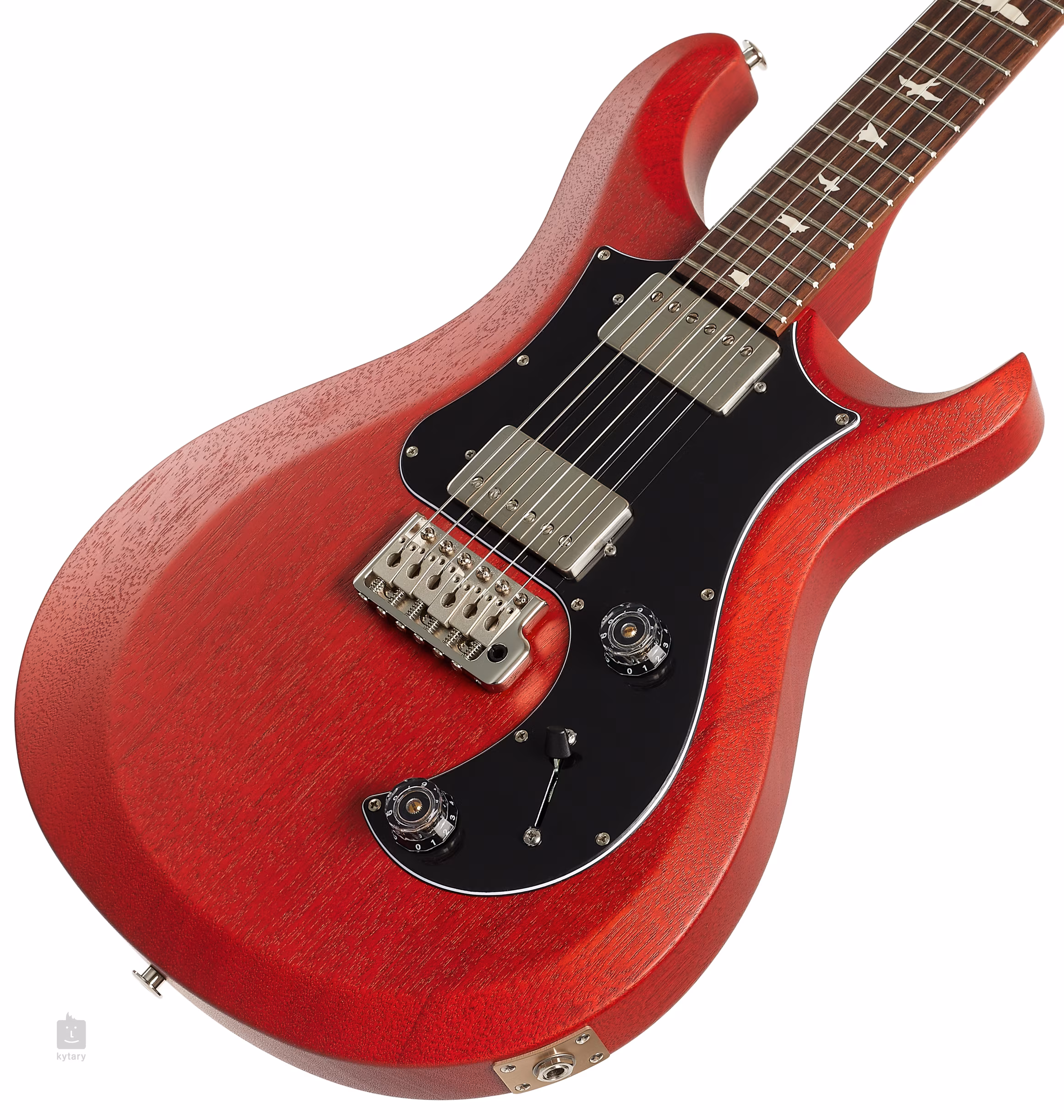 Die Qualitäten des Korpus und der Lackierung der S2 Standard 24 Satin Vintage Cherry Satin aus Mahagoni werden durch eine dünne Schicht satinierten Nitrolacks hervorgehoben. Ein Palisander-Griffbrett mit vierundzwanzig Bünden ist auf einen Mahagoni-Hals mit Pattern Thin-Profil geleimt. Positionsmarkierungen in Form von Vogelsilhouetten erleichtern die Orientierung auf dem Griffbrett.