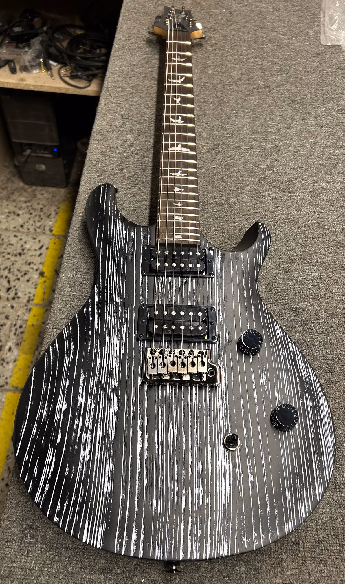 Ein Paar der hauseigenen Humbucker verleiht der Gitarre einen sauberen Sound mit druckvollen Mitten. Sein Charakter lässt sich mit dem Volume- und Tone-Shutter-Potentiometer einstellen, und dank der Push/Pull-Tone-Shutter-Funktion (Spulensplit) bietet die Gitarre auch den reinen Sound von Single-Coil-Pickups. Die Saiten sind in einem Werks-Tremolo eingespannt, und die Stimmstabilität wird durch hochwertige PRS-Laufwerke gewährleistet. Die Gitarre wird in einem Gigbag geliefert.
