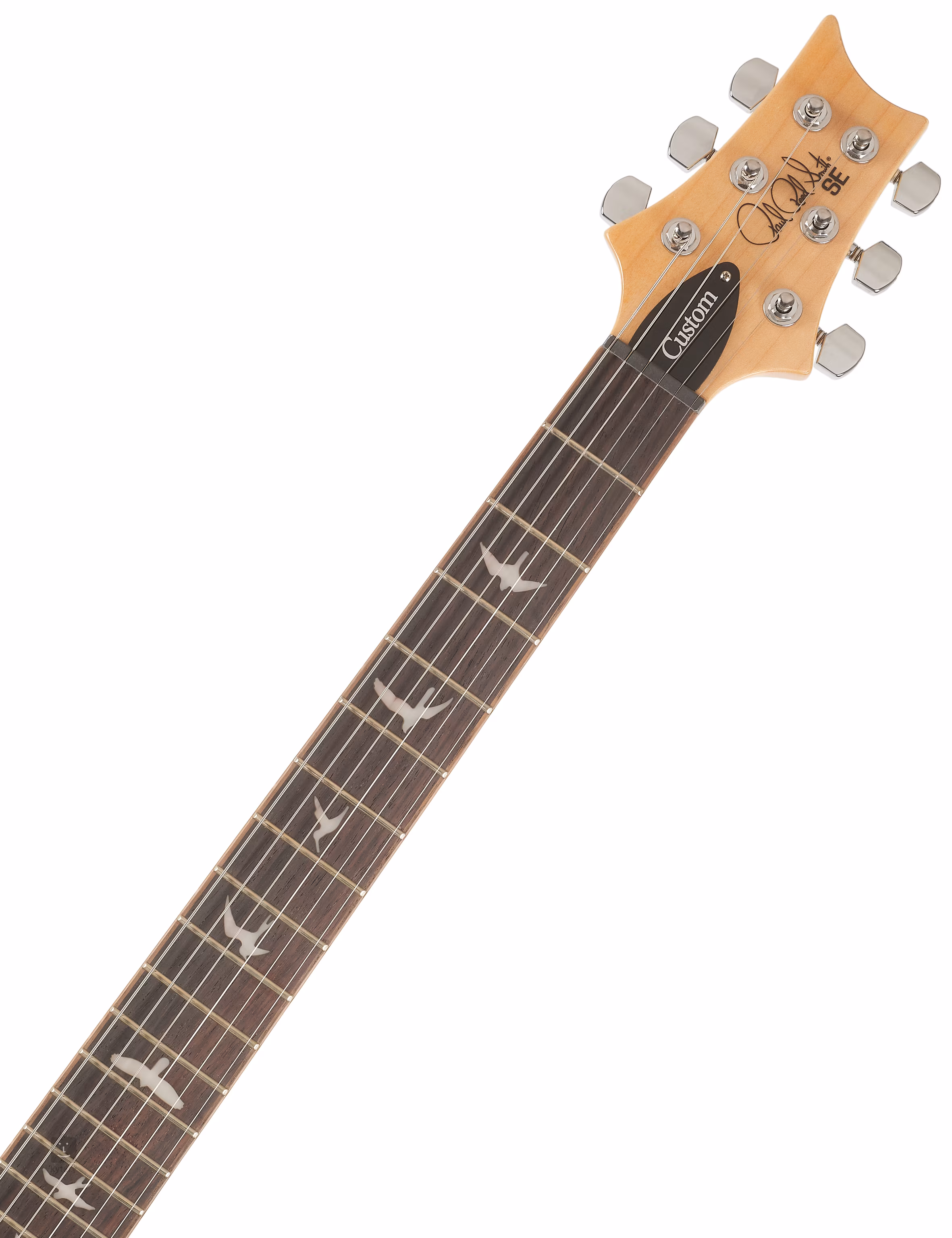 Die E-Gitarren PRS SE Custom 24-08 aus der preisgünstigeren SE-Serie bieten das originale PRS-Korpusdesign mit zwei Cutaways und eine Verarbeitungsqualität, die dem Ruf der Marke entspricht. Sie unterscheiden sich von den Standardmodellen Custom 24 durch ihre Elektronik, bei der der Push/Pull-Tonregler durch zwei Mini-Coil-Tap-Schalter mit breiteren Klangoptionen ersetzt wurde (die 08 im Namen bezieht sich auf 8 verschiedene Tonabnehmerkonfigurationen). Der Mahagonikorpus der SE Custom 24-08 Blood Orange ist mit einer Ahorn-Decke und einer effektvollen Furnieroberfläche aus geflammtem Ahorn verziert. Der Shallow Violin Carve-Ausschnitt bringt die Spieleigenschaften des Instruments qualitativ näher an die teureren amerikanischen Modelle der Core-Serie. Der Ahornhals mit Wide Thin-Profil ist mit einem Palisandergriffbrett mit 24 Bünden versehen. Die Orientierung auf dem Griffbrett erleichtern Positionsmarkierungen in Form von perlmuttfarbenen Vogelsilhouetten. Zwei Humbucker des Herstellers verleihen der Gitarre einen klaren Klang, der neben der Fülle der Humbucker dank zweier Mini-Coil-Tap-Schalter auch die Durchschlagskraft von Single-Coils oder den volleren Klang von Soapbar-Tonabnehmern bietet. Der Klangcharakter kann mit den Standardreglern angepasst werden. Die Saiten sind in einem patentierten PRS-Tremolo-System befestigt, die Stimmstabilität wird durch hochwertige PRS-Mechaniken gewährleistet. Die Gitarre wird in einer Tasche (Gig Bag) geliefert. PRS-Gitarren aus der Werkstatt von Paul Reed Smith gelten als einige der vielseitigsten und zuverlässigsten Instrumente überhaupt. Dank ihres großartigen Klangs und ihres Spielkomforts sind sie beispielsweise bei Santana oder Mark Tremonti sehr beliebt. Neben den bewährten Klassikern finden Sie im Angebot der Marke auch Linkshändermodelle, Siebensaiter, Bariton- und Halbakustikgitarren sowie Signature-Modelle bekannter Gitarristen. Instrumente mit der Bezeichnung SE werden in Indonesien hergestellt. Über ihre Qualität müssen Sie sich jedoch keine Sorgen machen – Produktionsstandards und sorgfältige Endkontrollen sind selbstverständlich.