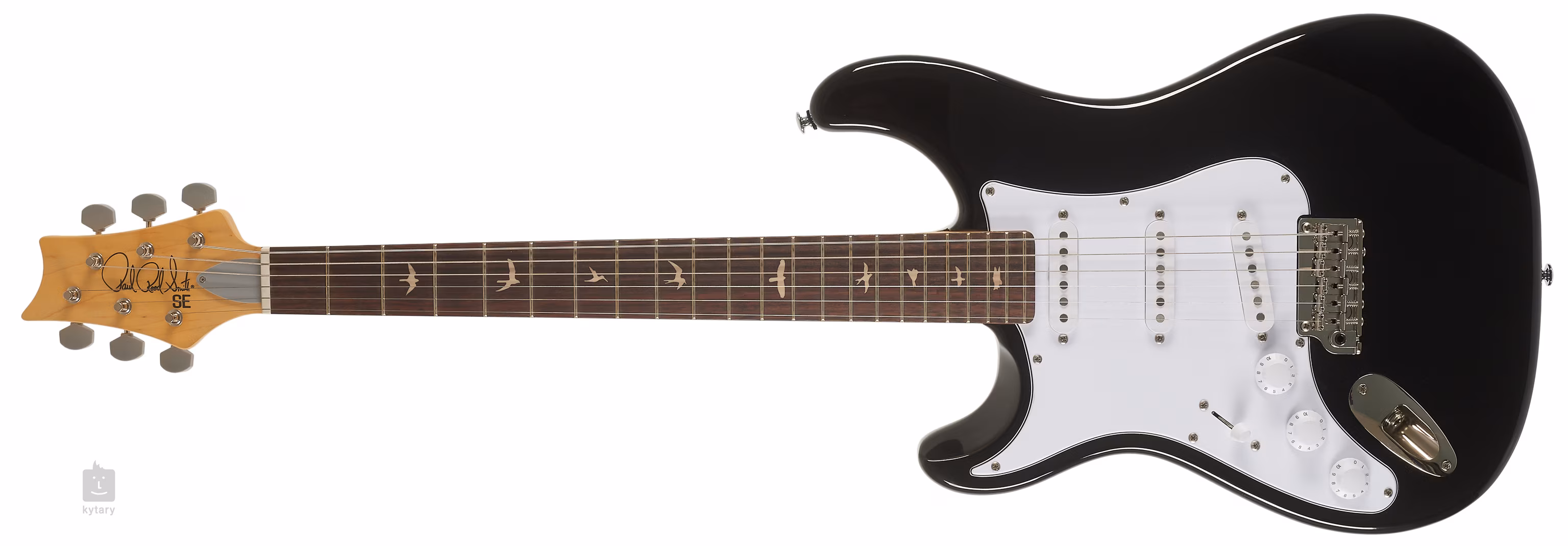 Drei Single-Coil 635JM "S"-Tonabnehmer verleihen der Gitarre einen wunderbar singbaren Sound. Sein Charakter lässt sich mit zwei Tonblende-Potentiometern und einem Lautstärkeregler bearbeiten. Die Saiten werden von einem 2-Punkt-Stahltremolo und Vintage-Stimmmechaniken gehalten. Zu den weiteren Merkmalen des Instruments gehören eine Kopfplatte mit dem PRS-typischen Inverted-Design und das obligatorische Pickguard.