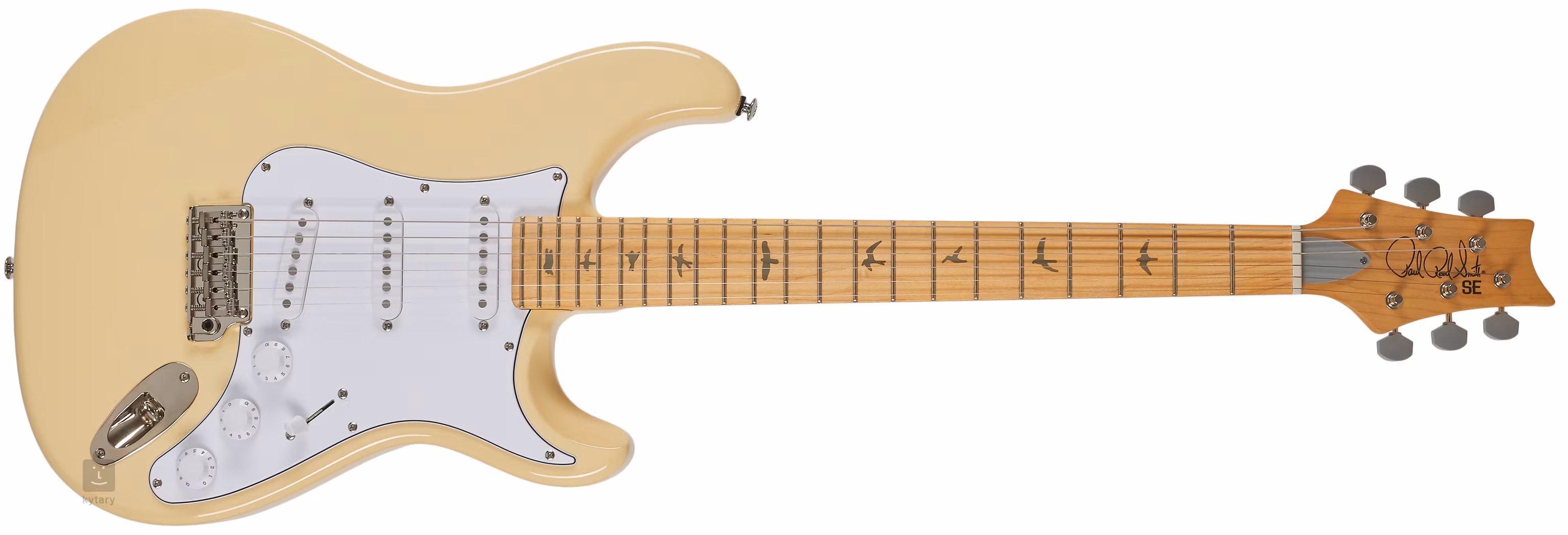 Drei Single-Coil 635JM "S"-Pickups verleihen der Gitarre einen wunderbar singenden Sound, den Sie mit den Tonmembran-Potentiometern, dem Lautstärkeregler und dem fünfstufigen Pickup-Schalter nach Ihrem Geschmack einstellen können. Die Saiten werden von einem 2-Punkt-Stahltremolo und PRS-Stimmmechaniken im Vintage-Stil gehalten. Das Styling wird durch eine Kopfplatte mit PRS' Markenzeichen, dem invertierten Design, und dem obligatorischen Schlagbrett akzentuiert.