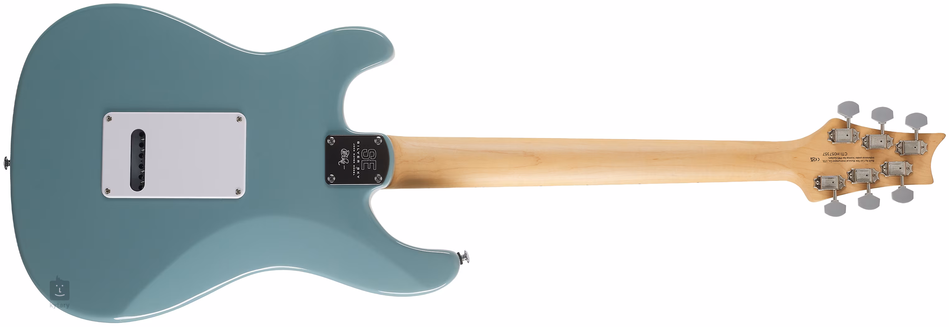 Die PRS SE Silver Sky MN Stone Blue ist die günstigere E-Gitarre der SE-Linie. Der Korpus des Instruments ist aus Pappelholz gefertigt. Der geschraubte Ahornhals weist das originale 635JM Cutaway/Profil auf, und das Ahorngriffbrett ist mit 22 Bünden und Positionsmarkierungen in Form von Vogelsilhouetten ausgestattet.