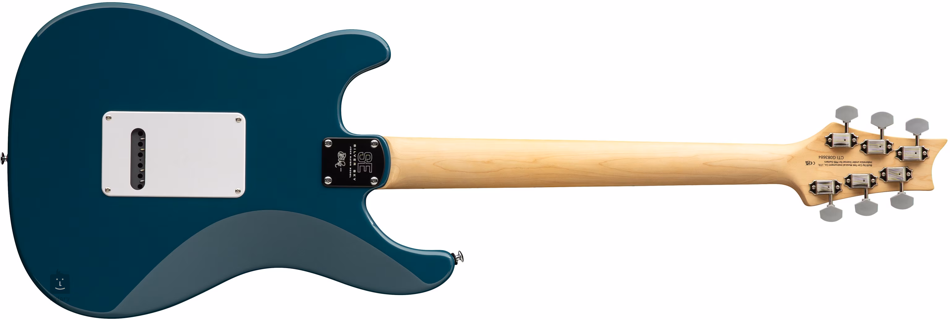 Die PRS SE Silver Sky Nylon Blue 2026 ist eine preisgünstigere E-Gitarre aus der SE-Serie. Der Korpus des Instruments ist aus Pappelholz gefertigt. Der verschraubte Ahornhals bietet das originale 635JM-Profil, das Ahorngriffbrett ist mit 22 Bünden und Positionsmarkierungen in Form von Vogelsilhouetten versehen.