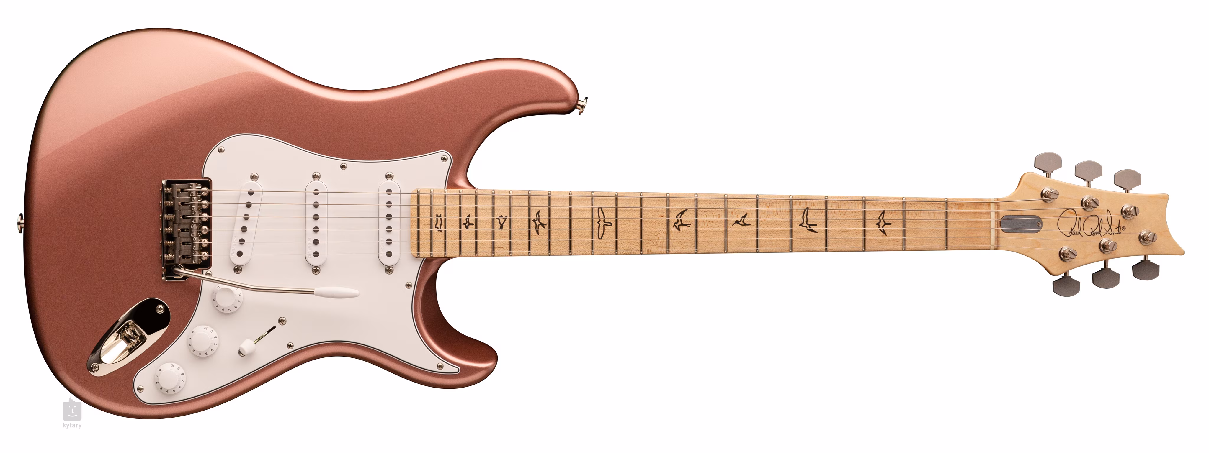 Die Stimmstabilität wird durch die Befestigung der Saiten an der arretierbaren Vintage-Mechanik und das Stahltremolo gewährleistet, das mit PRS-Elementen in Form eines Tremolohebels und Gen III-Schrauben (Messerschneide) angereichert ist. Zu den weiteren Besonderheiten des Instruments gehören eine Kopfplatte mit dem für PRS typischen invertierten Design, ein Griffbrett aus Knochen oder eine signierte Halsplatte. Das stilvolle Finish wird durch ein weißes Schlagbrett akzentuiert.
