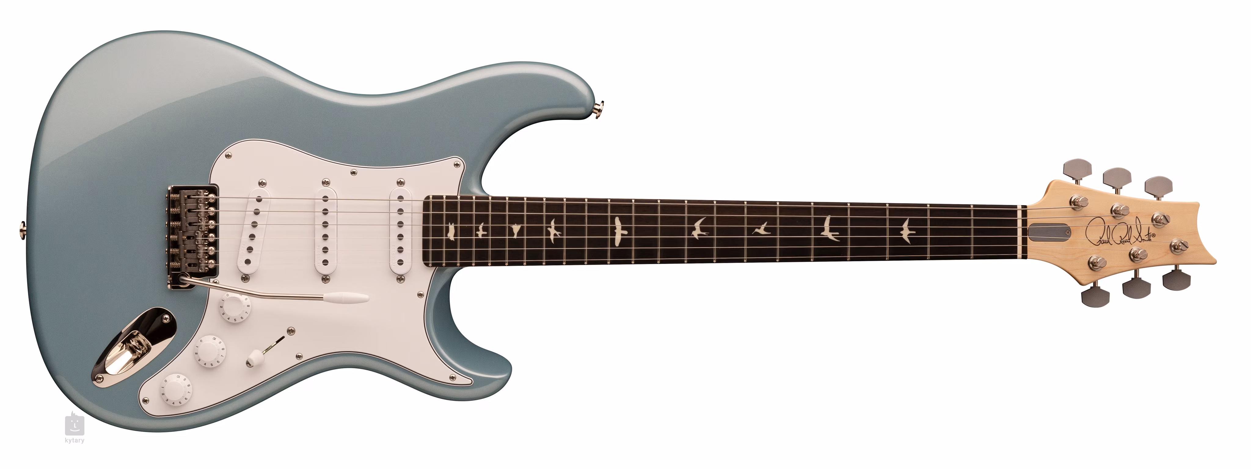 Die Stimmstabilität wird durch die Befestigung der Saiten an der arretierbaren Vintage-Mechanik und das Stahltremolo gewährleistet, das mit PRS-Elementen in Form eines Tremolohebels und Gen III-Schrauben (Messerschneide) angereichert ist. Zu den weiteren Besonderheiten des Instruments gehören eine Kopfplatte mit dem für PRS typischen invertierten Design, ein Griffbrett aus Knochen oder eine signierte Halsplatte. Das stilvolle Finish wird durch ein weißes Schlagbrett akzentuiert.