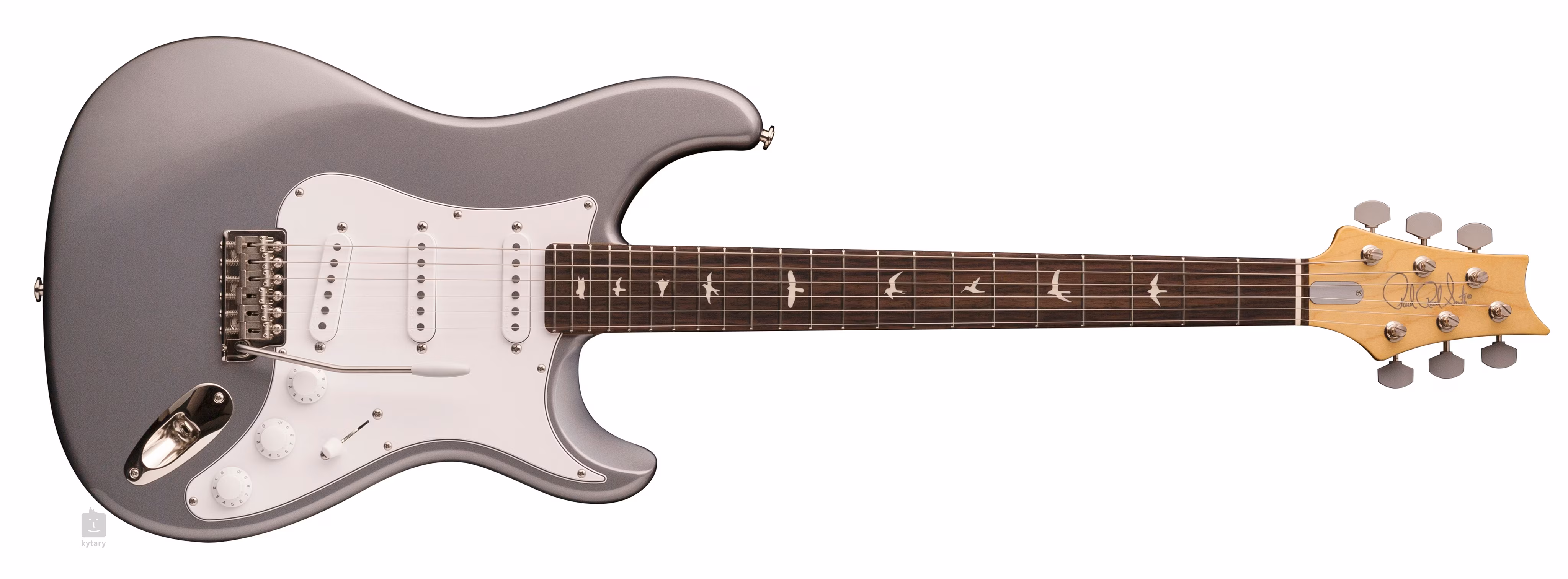 Die Stimmstabilität wird durch die Befestigung der Saiten an der arretierbaren Vintage-Mechanik und das Stahltremolo gewährleistet, das mit PRS-Elementen in Form eines Tremolohebels und Gen III-Schrauben (Messerschneide) angereichert ist. Zu den weiteren Besonderheiten des Instruments gehören eine Kopfplatte mit dem für PRS typischen invertierten Design, ein Griffbrett aus Knochen oder eine signierte Halsplatte. Das stilvolle Finish wird durch ein weißes Schlagbrett akzentuiert.