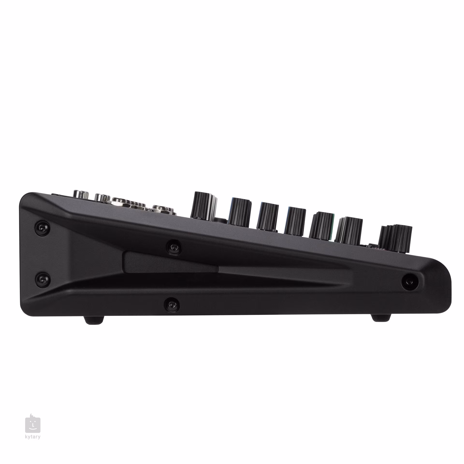 Der F 6X bietet insgesamt sechs Kanäle - während die ersten beiden mit Mikrofon- (XLR) oder Line-Eingängen (6,3 mm Klinke) ausgestattet sind, sind die restlichen vier für Mono- oder Stereo-Verbindungen ausgelegt und verfügen entweder über Mono/Stereo-Line-Eingänge oder Stereo-Cinch-Buchsen. Die ersten beiden Kanäle sind mit Gain-Reglern, einem Dreiband-EQ (High, Mid, Low), einem AUX/FX Post-Regler für Effekte und einem Potentiometer für das Panning ausgestattet. Die verbleibenden vier Kanäle sind paarweise gruppiert (3/4, 5/6), verfügen über einen Zweiband-EQ und ein Balance-Potentiometer zur Einstellung des Verhältnisses der beiden Kanäle anstelle des Standard-Panoramareglers. Außerdem gibt es eine +48-V-Phantomspeisung, eine Effektsektion und eine Reihe von globalen Reglern.