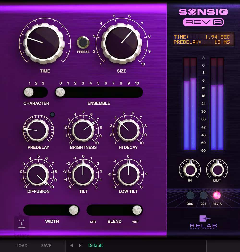 Der professionelle Raumhall Sonsig Rev A von Relab ist für Prozessaufnahmen, Mix und Mastering geeignet. Das Instrument verfügt über ein übersichtliches Bedienfeld mit verschiedenen Reglern, Tasten und LED-Anzeigen für Eingangs- und Ausgangssignale. Außerdem stehen Ihnen mehr als 200 Voreinstellungen zur Verfügung.