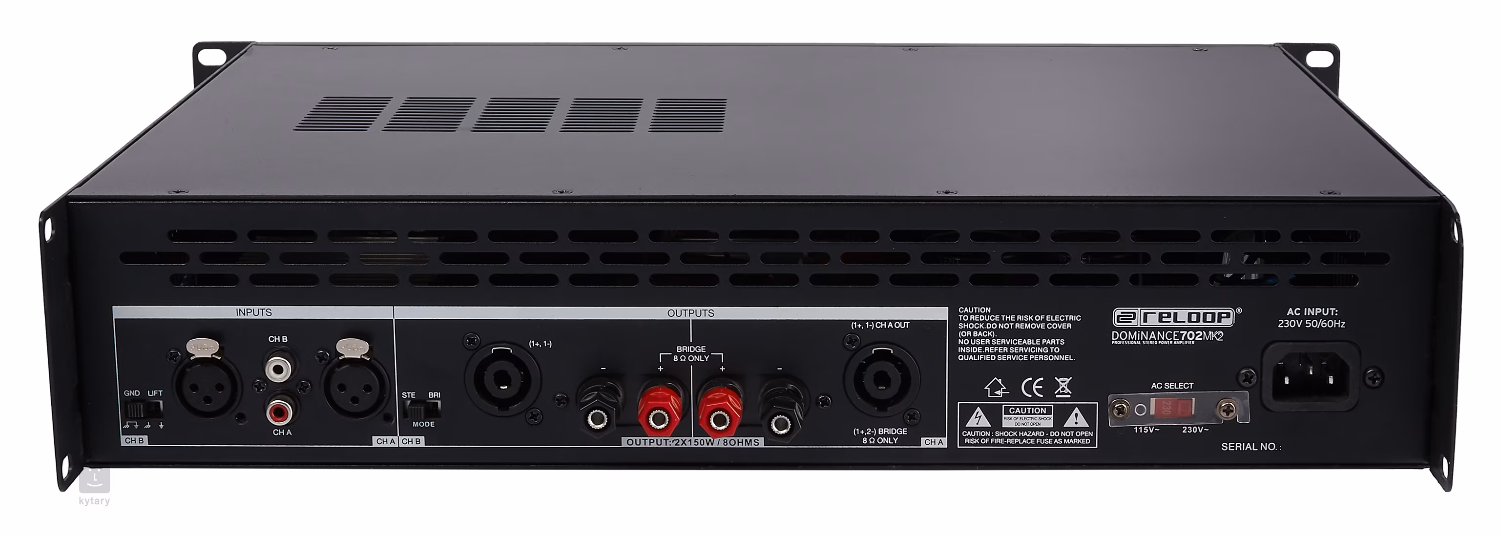 Der Zweikanal-Verstärker hat ein neues, modernes Design erhalten, die Möglichkeit, ihn als Bridge-Mono anzuschließen und sein Gewicht wurde reduziert. Die Zuverlässigkeit, das leistungsstarke Kühlsystem mit einstellbarer Geschwindigkeit, der Überhitzungsschutz oder die getrennten Stromkreise für Kanal A und Kanal B bleiben jedoch erhalten. Auf der Rückseite befinden sich XLR- und Cinch-Eingänge für den Anschluss Ihrer Musikgeräte sowie Speakon/Klinke 6,3 mm/RCA-Ausgänge für den Anschluss an eine PA. Außerdem befindet sich auf der Rückseite ein Ground/Lift-Schalter, der Hintergrundgeräusche verhindert.
