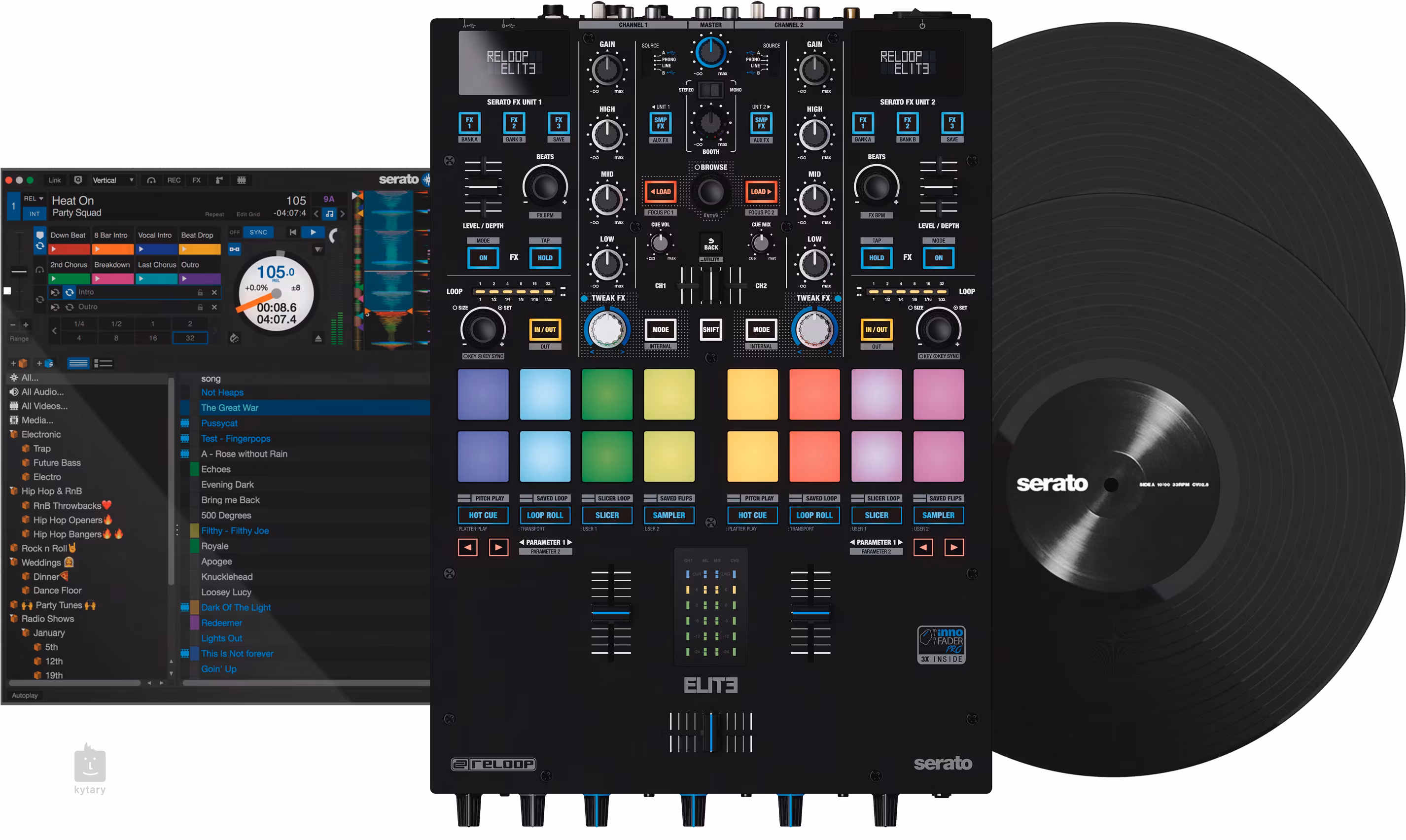 Reloop bringt die neue Elite-Serie auf den Markt, bestehend aus dem DJ-Plattenspieler RP-8000 MK2 und dem Elite-Zweikanal-Mischpult. Die Serie wurde speziell für die Steuerung der beliebtesten DJ-Software Serato entwickelt. Mit sechzehn hintergrundbeleuchteten RGB-Performance-Pads, die auf zwei Kanäle aufgeteilt sind, ist der Reloop Elite-Mixer perfekt für Live-Auftritte selbst in den dunkelsten Clubs. Die Pads können zur Steuerung aller Softwarefunktionen verwendet werden, so dass Sie die verschiedenen Effekte und Filter, die Serato bietet, zu Ihren Tracks hinzufügen können. Die Pads sind unabhängig voneinander, so dass Sie für jeden Reloop RP-8000 MK2 Plattenspieler unterschiedliche Einstellungen wählen können.