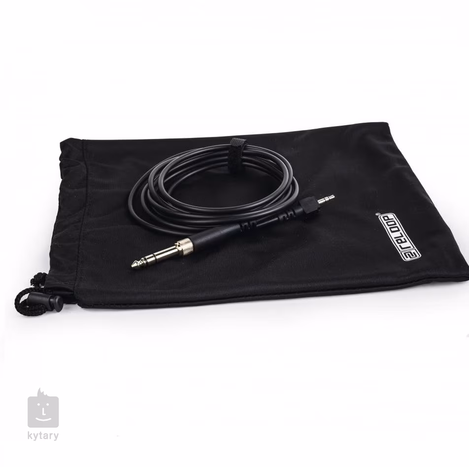 Der Kopfhörer wird außerdem mit einem austauschbaren Kabel und einer Schutztasche geliefert.