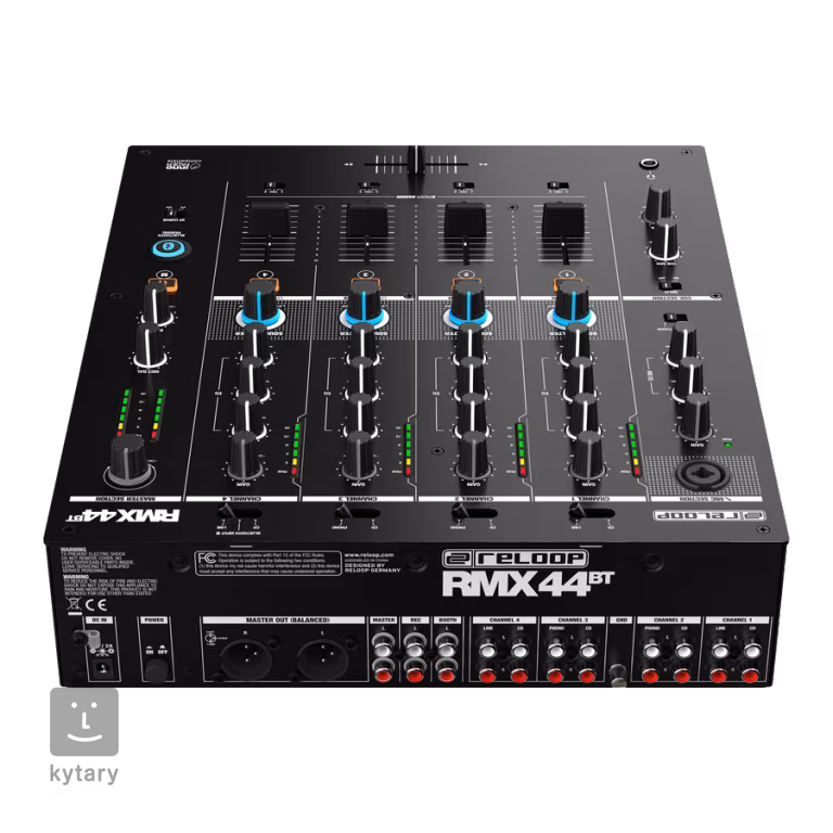 Der Reloop RMX-44 BT ist ein kompakter 4-Kanal-Clubmixer mit digitaler Architektur, Bluetooth-Funktechnologie und integrierten Instant Sound Colour-Effekten. Er erfüllt die gleichen Klangstandards wie das Flaggschiff von Reloop, der RMX-80.