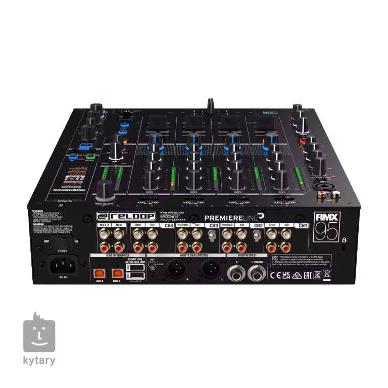 Das RMX-95 verfügt außerdem über eine Vielzahl von Anschlüssen und Ein- und Ausgängen, an die Sie problemlos externe Geräte wie Plattenspieler, CD-Player oder DJ-Controller anschließen können. So können Sie Ihre Mixing-Möglichkeiten erweitern und andere Geräte anschließen.