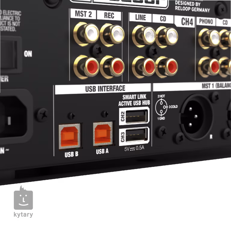 7x RCA Line, 2x RCA Phono, XLR/Jack 6,3 mm, 1x Jack 6,3 mm TR mikrofonní, 2x USB