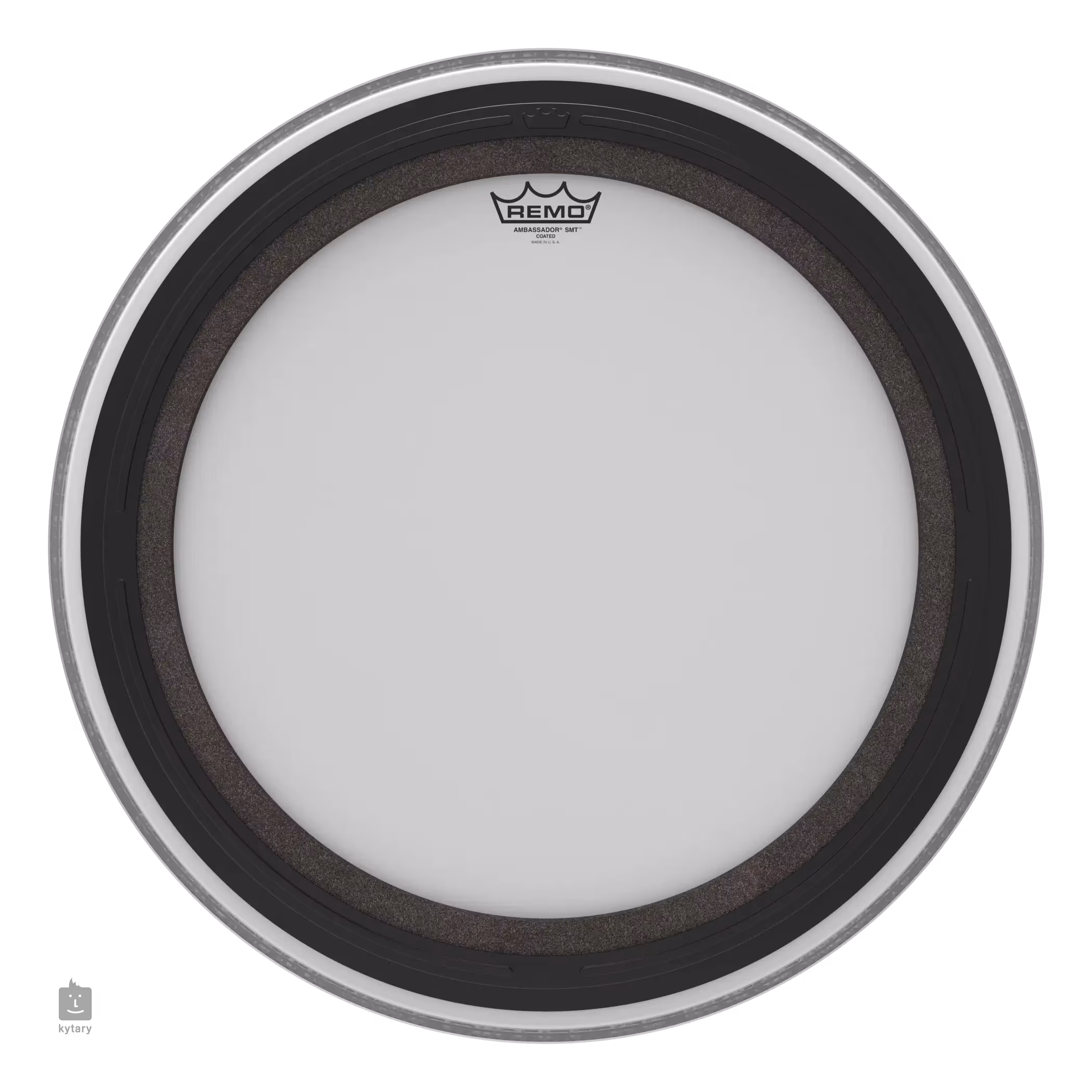 Ambassador® SMT™ Coated Drum Membran für Bass Drum mit Sub Muffl® Technologie. Sie besteht aus einer einzigen 10 Millimeter dicken Schicht mit einer Sandbeschichtung und verfügt über ein Design mit einem vorgedämpften Effekt dank der Sub Muffl® Technologie. Diese Kombination ermöglicht es Ihnen, die hohen und mittleren Frequenzen zu kontrollieren und gleichzeitig kraftvolle tiefe Töne zu erzeugen. Die Membran bietet einen weiten Stimmbereich, der für Jazz und zeitgenössische Stile geeignet ist, und liefert zusätzlichen Attack mit tiefen tiefen Frequenzen.