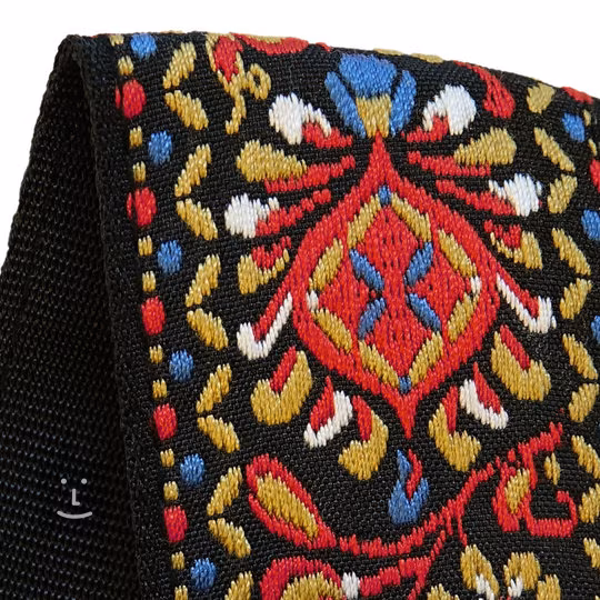 Dieser Retro-Gitarren-/Bassgurt der deutschen Firma Richter wurde sorgfältig verarbeitet, um den hohen Anforderungen professioneller Musiker gerecht zu werden. So können Sie sich auf maximalen Spielkomfort und hohe Haltbarkeit verlassen. Dank des breiten Spektrums an verstellbaren Längen können Sie sicher sein, dass der Gurt in jeder Situation perfekt zu Ihnen passt. Der Gurt besteht aus synthetischen, 100% veganen Materialien, insbesondere aus einem stilvollen Jacquard-Gewebe mit einzigartigem Retro-Design, das auf der Unterseite durch komfortable und sehr starke Nylonfasern ergänzt wird.