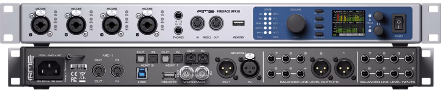 Das Fireface UFX III bietet 60 Eingänge und 64 Ausgänge, darunter analoge und digitale Anschlüsse, die den Anschluss einer Vielzahl von Geräten und Peripheriegeräten ermöglichen. Es verfügt außerdem über hochwertige Mikrofonvorverstärkereingänge und unterstützt Sampleraten bis zu 192 kHz.