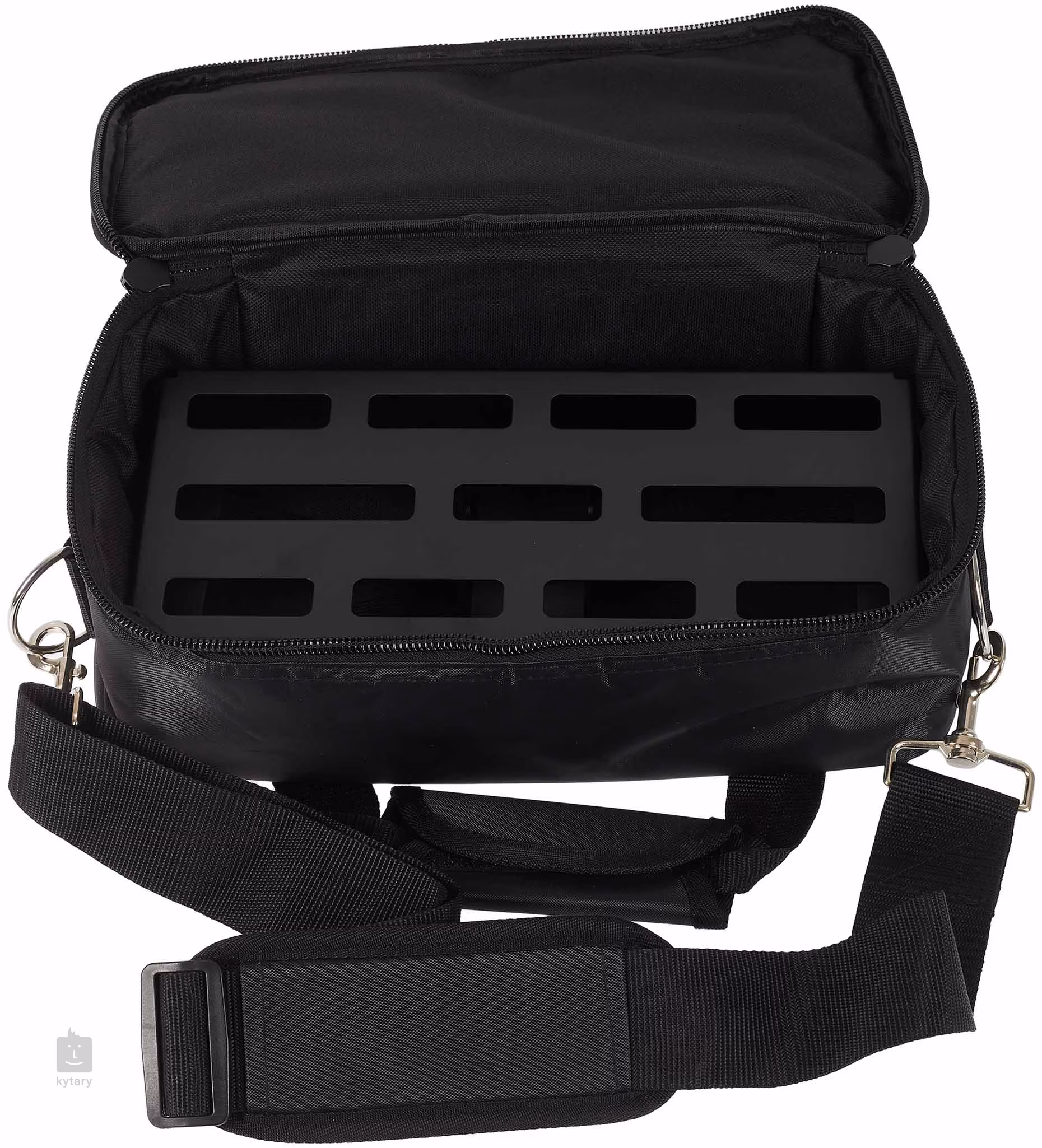 Das Rockboard DUO 2.0 mit Gig Bag Pedalboard basiert auf dem neuen Design der 2018er Rockboard/Warwick Pedalboards. Das Hauptaugenmerk lag auf der Reduzierung des Gewichts und der Erhöhung der Festigkeit und Haltbarkeit, was durch eine neue einteilige, kaltgewalzte und nicht geschweißte Aluminiumkonstruktion erreicht wurde. Das Pedalboard bietet problemlos Platz für 3 bis 5 Effektpedale (je nach Größe). Das clevere Design mit erweiterten Schlitzen ermöglicht die Verwendung von Rockboard QuickMount-Pedalboard-Montageplatten in verschiedenen Formen und Größen (nicht im Lieferumfang enthalten, das mitgelieferte Klettband ist eine sofortige Lösung), die einfache Befestigung eines Power-Multiadapters an der Unterseite des Pedalboards und die effiziente Organisation von Kabeln und Jumpern.