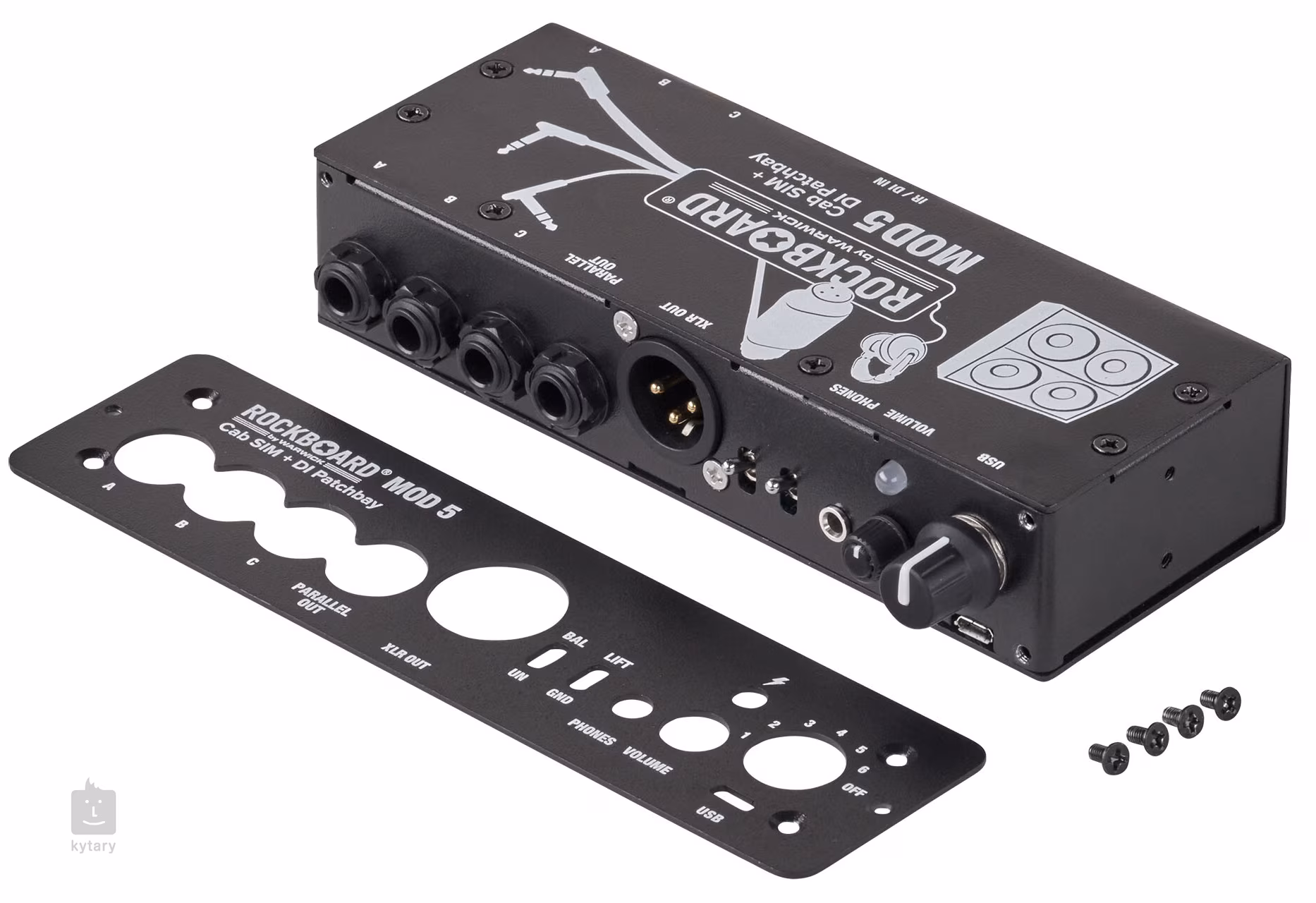 Die erweiterte Version des MOD 5 bietet eine eingebaute aktive DI-Box, einen Kopfhörerverstärker (mit zugehörigem Lautstärkeregler) und vor allem einen Lautsprechersimulator mit sechs aufgezeichneten Gitarren-Impulsantworten (IRs) und der Möglichkeit, eigene IRs in den MOD 5 zu laden. So haben Sie einfach immer eine Alternative in Ihrem Pedalboard, z.B. den Sound Ihrer Lieblingsbox, für den Fall, dass die Backline bei einem Gig nicht Ihren Anforderungen entspricht. Weitere praktische Features sind ein optionaler Mono-/Stereo-Eingang, ein symmetrischer XLR-/unsymmetrischer 6,3-mm-Parallelklinkenausgang, Micro-USB für Firmware-Updates, schaltbare Erdung und eine abnehmbare Frontplatte, falls Sie das MOD 5 auf/unter Ihrem Pedalboard montieren möchten.