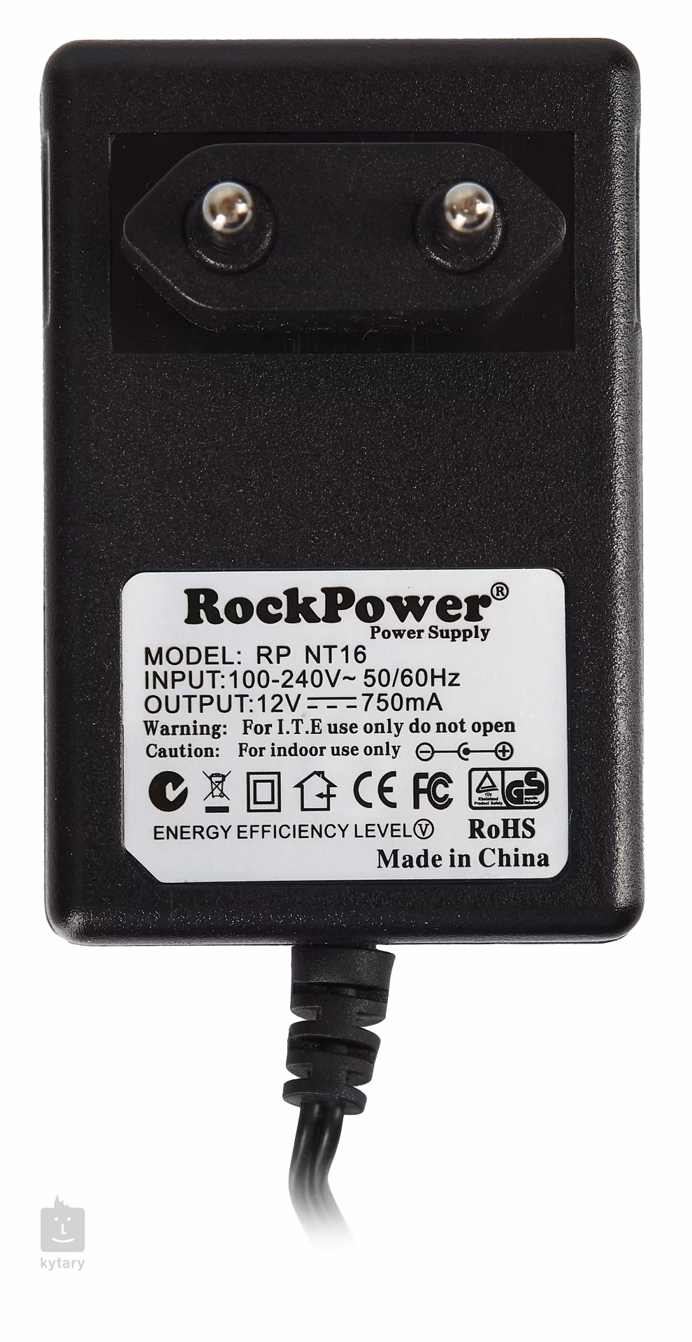 Der RockPower NT 16 ist ein 12-V-Gleichstromadapter mit einer maximalen Stromaufnahme von 750 mA und einem Standardstecker von 5,5 x 2,1 mm. Eingangsspannung 100-240 V, Polarität Center Plus.