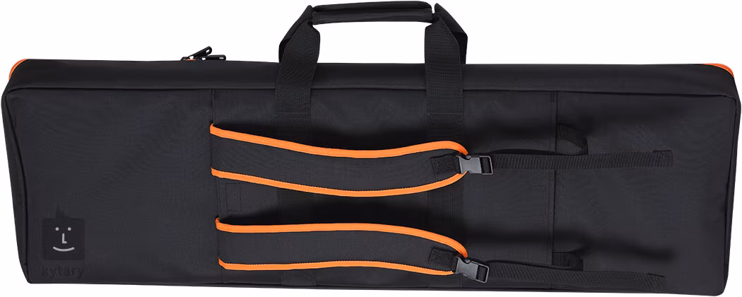 Die verdeckten Rucksackgurte sorgen für ein bequemes Tragen auf dem Rücken, während die stabilen Griffe ein einfaches Handling auf kürzeren Strecken ermöglichen. Die große Fronttasche bietet reichlich Platz für Kabel, Netzteile oder kleines Zubehör und kann auch den optionalen Notenständer für GO:KEYS Modelle (MRGKS3/5) aufnehmen.