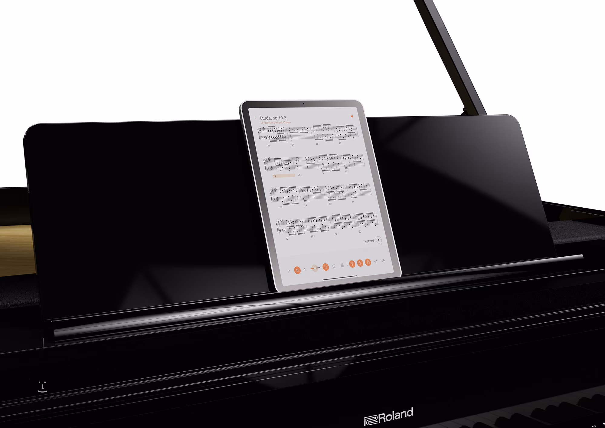 Roland Piano App Die Roland Piano App erweitert nahtlos die Möglichkeiten der Fernsteuerung des GP-9 von Ihrem Smartphone oder Tablet aus. Wählen Sie Klänge aus, steuern Sie das Metronom und nutzen Sie die Aufnahmefunktion, um Ihre Leistung zu bewerten und zu sehen, woran Sie noch arbeiten müssen. Stöbern Sie in den integrierten Pianotiteln und der wachsenden Auswahl an Songs in der Roland Cloud, rufen Sie digitale Partituren auf und lernen Sie in Ihrem eigenen Tempo. Und motivieren Sie sich mit inspirierenden Unterrichtsfunktionen, die den Fortschritt fördern, wie z. B. einem Aktivitätsnotizbuch mit Zielen, Kartenspielen, Rhythmusübungen und dem One-Week-Master-Programm, mit dem Sie eine Vielzahl von Klavierstücken lernen können.