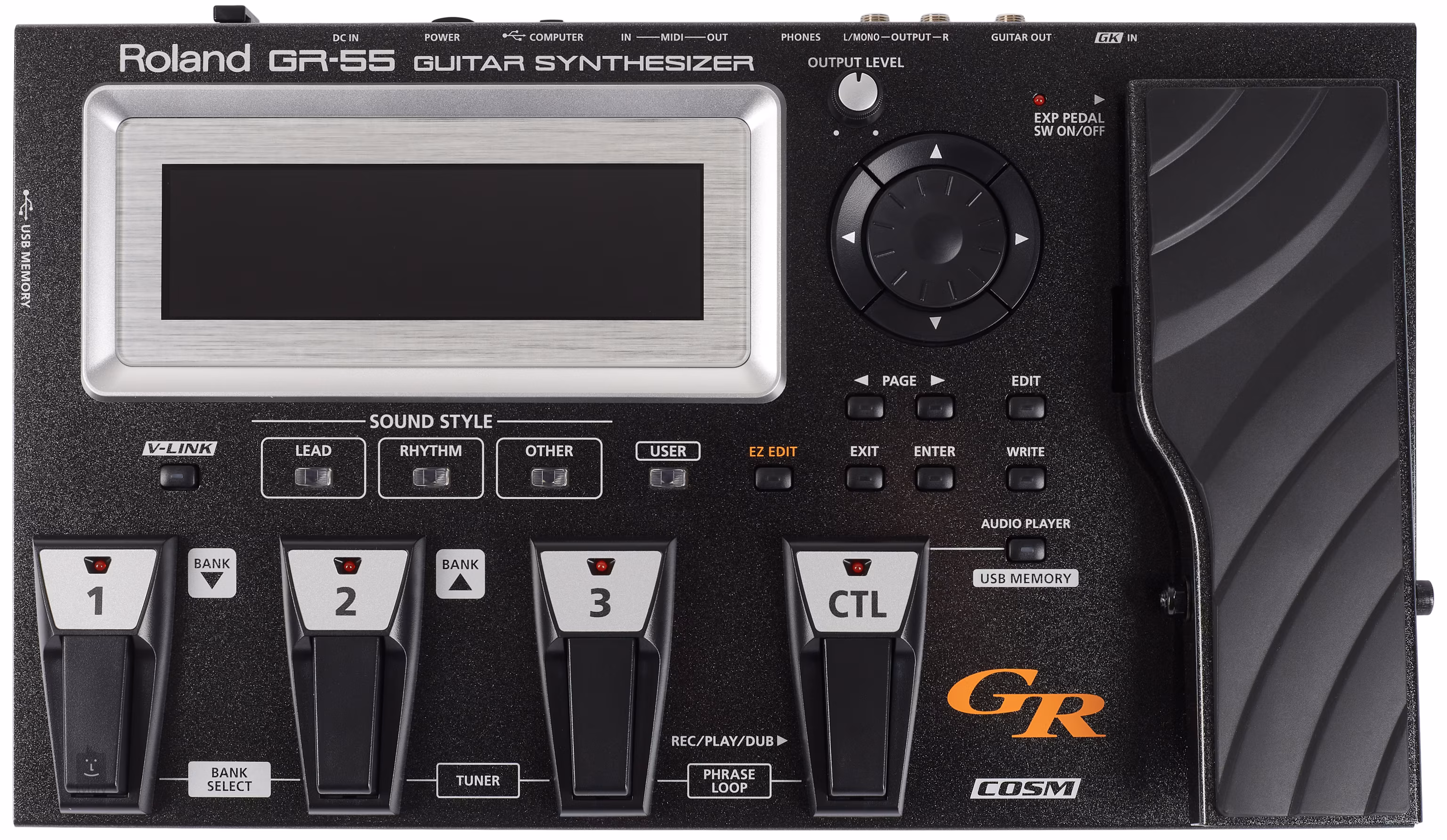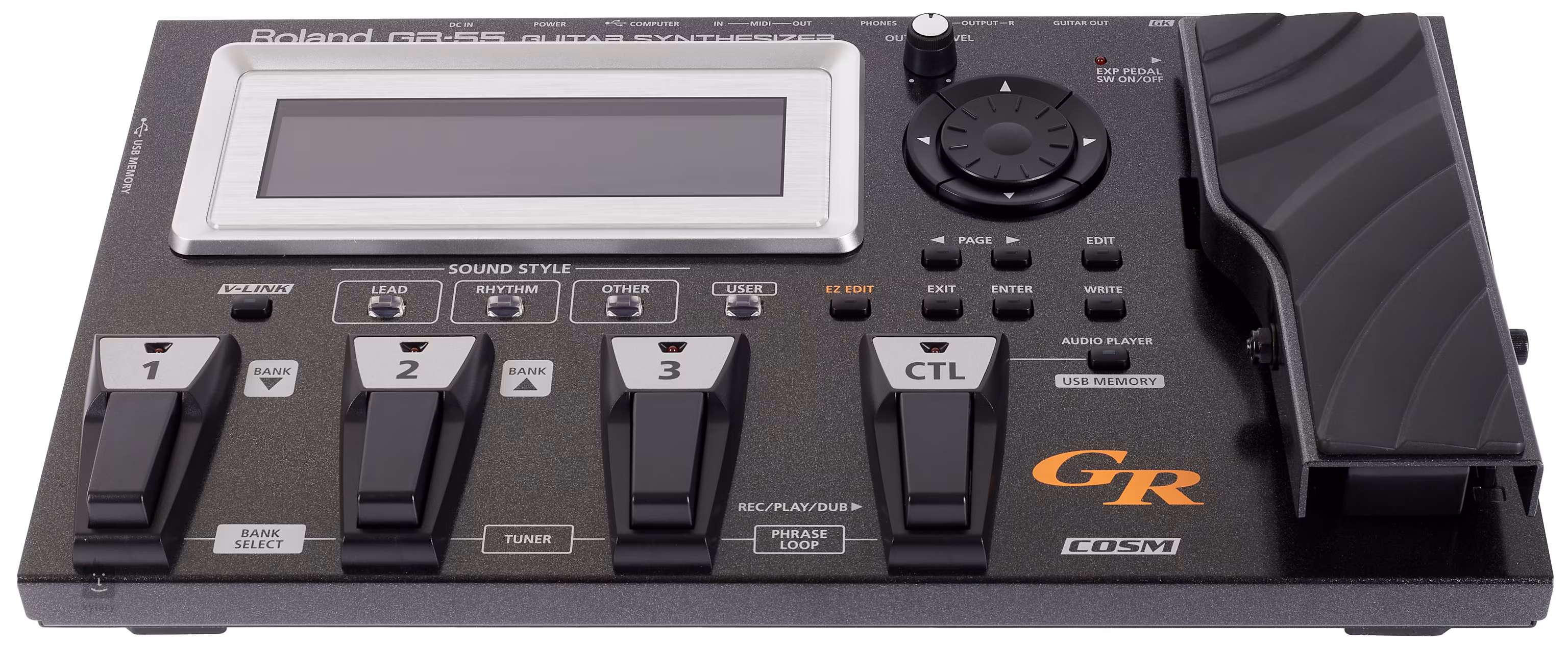 Eine neue Ära in Sachen Klang, Leistung und Spielbarkeit. Der Roland GR-55 revolutioniert die Gitarrensynthese mit Funktionen, über die bisher kein Gitarrenprozessor verfügte. Er ist außerdem schneller als je zuvor. Dank einer neu entwickelten Technologie zur Tonhöhenerkennung ist er gleichzeitig äußerst präzise. Was den Klang betrifft, so umfasst der Dreikern-Generator eine Reihe von Weltmodellen virtueller Gitarren, Bassgitarren, Combos und Synthesizer-Sounds und ermöglicht es Ihnen, mit Klängen und Texturen zu arbeiten, die noch niemand zuvor gehört hat. Auf der Bühne oder im Studio haben Sie sofortigen Zugriff auf die umfangreiche Bibliothek vorgefertigter Sounds des GR-55, von Pop bis Rock und mehr, die Sie schnell über Kategorie-Tasten auswählen können. Willkommen in der bahnbrechenden Ära der Gitarrensynthese! Es stehen bis zu vier Klangquellen gleichzeitig zur Verfügung: zwei PCM-Synthesizer-Sounds plus COSM-Gitarrenmodell und normaler Gitarreneingang. Über 900 der neuesten, frei editierbaren PCM-Sounds von Roland, darunter Pianos, Orgeln, Streicher, Vintage-Synthesizer und vieles mehr. COSM-Modeling von Gitarren und Verstärkern. Zwei Arten von Multieffekten plus globaler Hall, Chorus, Delay und eigener Looper. Der integrierte USB-Audio-Player wird über einen Fußschalter bedient. Diese Version wird ohne den geteilten GK-3-Sensor geliefert.