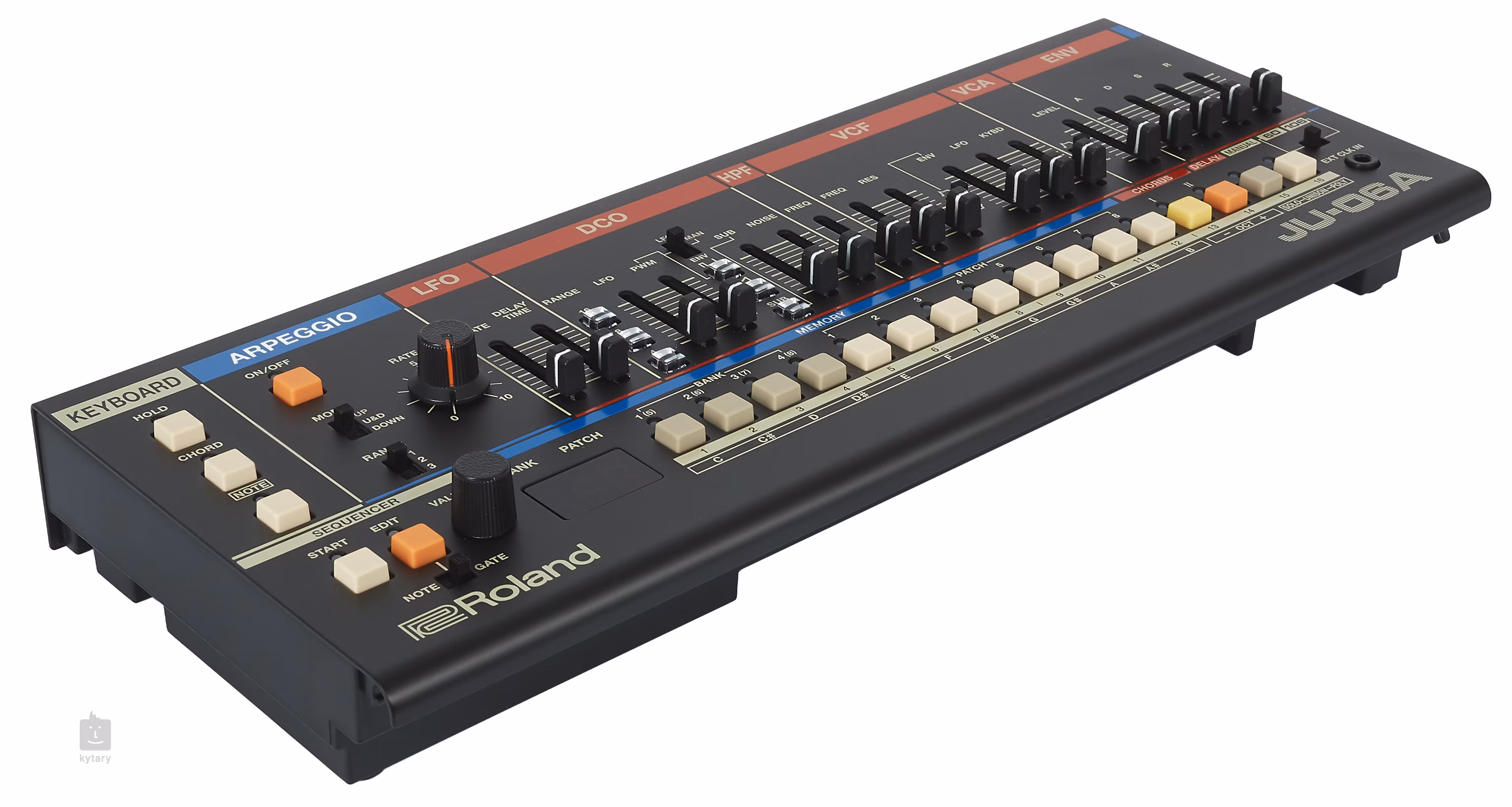 Der JU-06A vereint das Beste des JUNO-60 und des JUNO-106 in einem Synthesizer. So verfügt er über das stufenlos regelbare Hochpassfilter des 106, die per Envelope modulierbare Pulsweitenmodulation des 60 sowie das einzigartige Filterverhalten beider Klassiker – alles im direkten Zugriff regelbar über die Bedienoberfläche. Der Sound und das Regelverhalten ist von den Originalen nicht zu unterscheiden, selbst in extremen Einstellungen. Kein JUNO ist komplett ohne den wirbelnden Sound des legendären Chorus. Dieser wurde bis ins Detail rekonstruiert und verfügt sogar über das