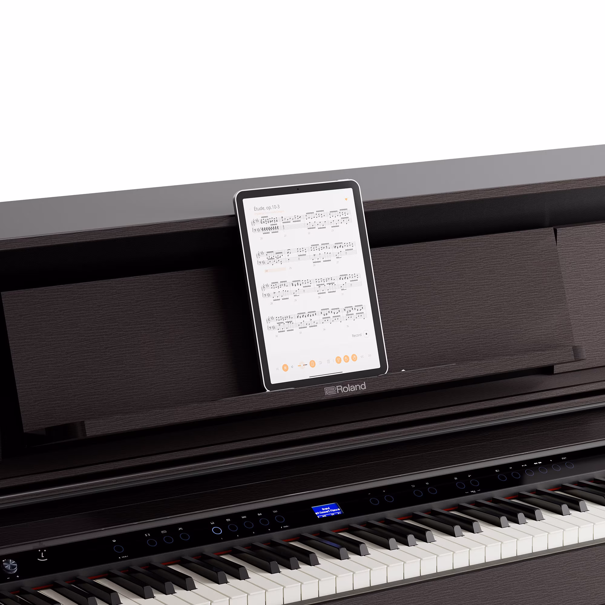 Digitales Repertoire Fördern Sie Ihre Kreativität und verfeinern Sie Ihre Fähigkeiten mit fortschrittlichen Funktionen, die nur auf einem Roland-Digitalpiano verfügbar sind. Greifen Sie auf digitale Partituren zu, spielen Sie Ihre Lieblingssongs und tauchen Sie tiefer in Ihr Setup ein, indem Sie Ihr Piano über Bluetooth mit der Roland Piano App und anderen Musik-Apps koppeln. Spielen Sie Duette im gleichen Bereich mit dem Twin Piano-Modus, nehmen Sie Ihr Spiel auf, um Ihre Fortschritte zu bewerten, halten Sie die Zeit mit dem eingebauten Metronom und vieles mehr.