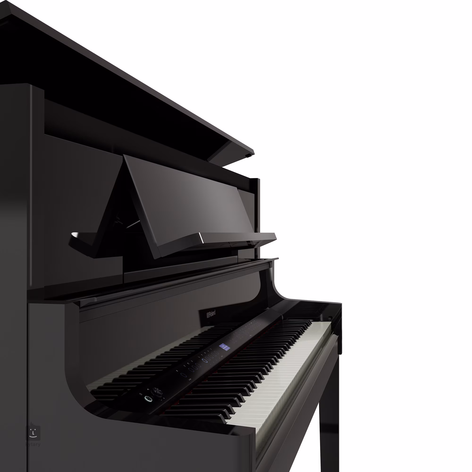 Das Roland LX-9 ist ein digitales Upright-Piano mit Hammermechanik und haptischer Rückmeldung, 88 Tasten, einem platzsparenden Gehäuse und fortschrittlichen Roland Piano Reality Modeling Technologien.