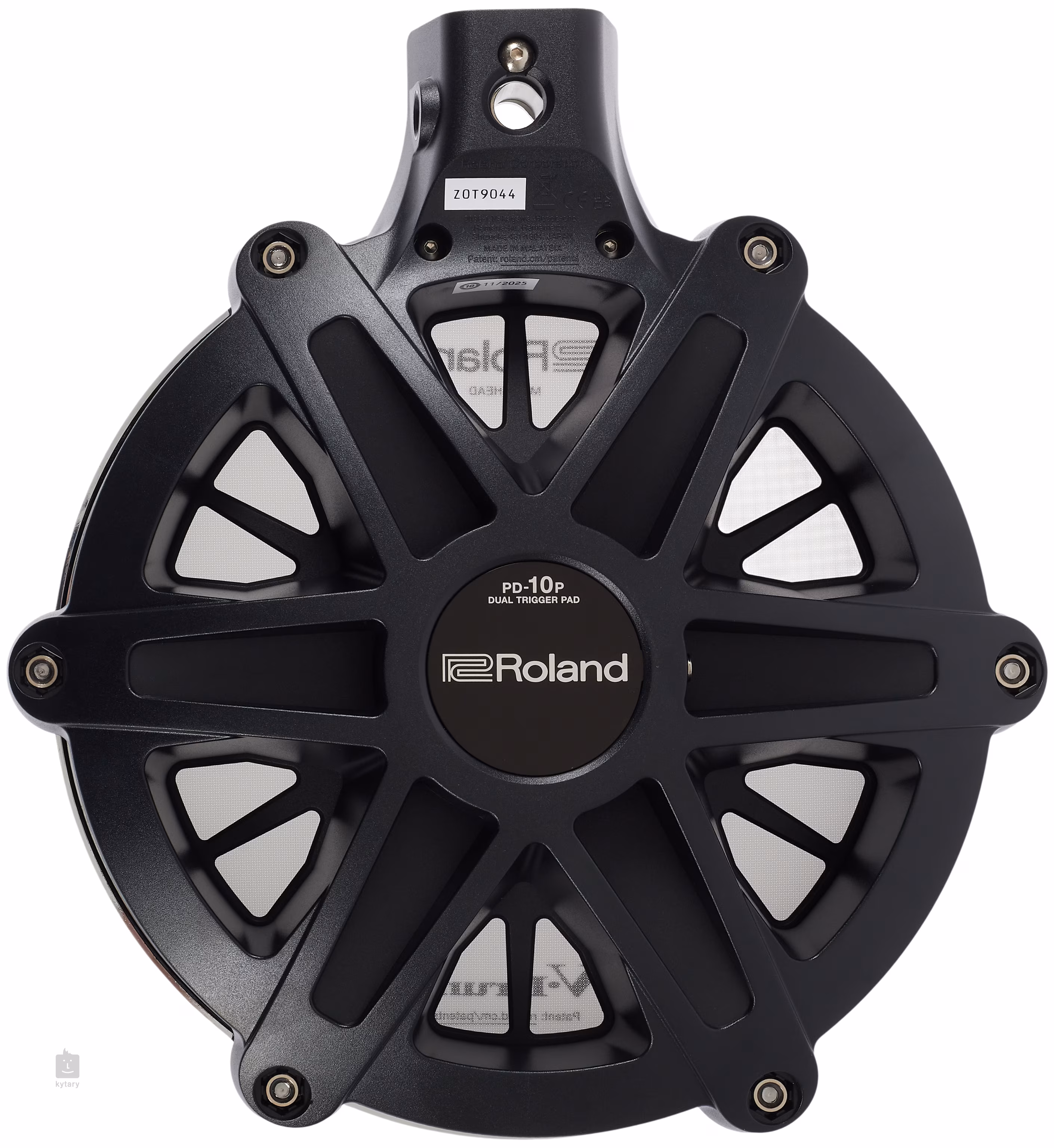 Das Pad PD-10P ist eine Variante für den Einsatz als Tom (Pad) und verfügt über eine doppelte Triggerung, d. h. es erfasst sowohl Schläge auf das Fell (Head) als auch auf den Rand (Rim). Dank präziser Erfassung und verbesserter Hardware bietet es eine gute Dynamikauflösung auch bei schnellen Schlagwechseln. Das Pad ist kompatibel mit Roland-Modulen, die mehrere Trigger auf einem Pad unterstützen, was eine größere Variabilität für Benutzer bietet, die verschiedene Sounds auf dem Rahmen und in der Mitte nutzen möchten.