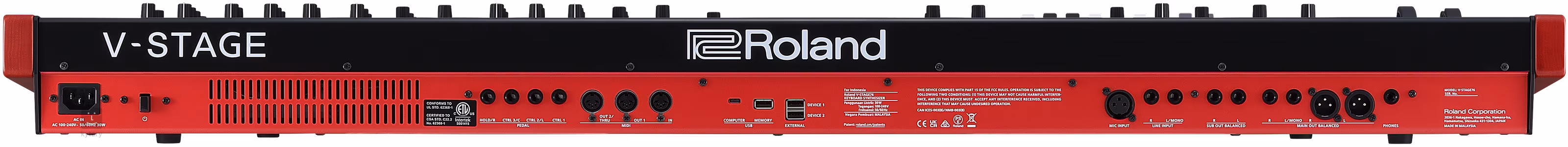 Zu diesem Produkt bieten wir Ihnen gerne einen maßgeschneiderten Koffer von Razzor aus eigener Herstellung an, der für maximalen Schutz beim Transport entwickelt wurde. Wir fertigen die Koffer nach Maß und genau nach Ihren Wünschen. Inspiration und Details finden Sie unter razzorcases.cz. Die Roland V-STAGE-Serie umfasst hervorragende All-in-One-Keyboards, die dank ihrer Kombination aus hoher Leistung und hervorragender Bedienbarkeit die Möglichkeiten der Bühnenpräsentation eindeutig auf ein neues Niveau heben und die meisten Anforderungen professioneller Keyboarder abdecken. Entdecken Sie unendliche Möglichkeiten der klanglichen Ausdruckskraft dank vier fortschrittlicher Sound-Engines, einer eleganten Bedienoberfläche und außergewöhnlicher Spielbarkeit. Erstklassiger Klang Die V-STAGE-Keyboards bieten vier unabhängige Sound-Engines, die zu den weltweit besten gehören und das Beste repräsentieren, was Roland zu bieten hat. > Akustische Klaviere mit sattem Klang und einzigartiger Dynamik, angetrieben von der V-Piano-Technologie, bieten Ihnen Zugang zu zwei Konzertflügeln, einem Klavier und einem Pianino. Dank ihrer beispiellosen DSP-Leistung stellen sie alle Systeme, die ausschließlich auf gesampelten Instrumenten basieren, in den Schatten und bieten eine natürliche Ansprache, unbegrenzte Ausdrucksmöglichkeiten und volle Polyphonie. > Die E-Pianos repräsentieren eine neu entwickelte Engine, die auf der neuesten Version der SuperNATURAL-Technologie basiert. Der Bereich umfasst klassische E-Pianos vom Typ Tine, Reed, verschiedene digitale Modelle und natürlich das Clavinet. Es stehen Funktionen zur Aufteilung der Tastatur, zur Einstellung von Oktaven, Detune und Key Touch Controls sowie ein Sound Lift-Potentiometer zur Anpassung der Klangstärke im Mix zur Verfügung. Sie können auch MFX-Zuweisungen, Tremolo oder Amp-Simulationen nutzen. > Die Orgeln sind ein Bereich, der von der berühmten Roland Virtual Tone Wheel-Technologie angetrieben wird, die dreistufige Orgeln, zwei klassische Transistor-Modelle und auch traditionelle Pfeifeninstrumente perfekt nachbildet. Harmonische Zugriegel und Percussion-Steuerelemente sorgen für einen authentischen Orgelklang, und Sie können das Erlebnis mit passenden Effekten wie Overdrive, Vibrato/Chorus oder Rotary Speaker mit einstellbarer variabler Geschwindigkeit und Mikrofonpositionen noch verstärken. > Die Synthesizer bilden einen umfangreichen Bereich, in dem Sie mehr als 400 ZEN-Core-Presets erwarten, die jeden Musikstil abdecken. Zwei parallele Komponenten mit der Möglichkeit der schnellen Klangformung über Attack-, Release-, Filter- und andere Steuerelemente bieten großartige Klangfarben, um eine fantastische Atmosphäre für Begleit- oder Lead-Sounds zu schaffen. V-STAGE unterstützt auch ZEN-Core-Patches und Klangoptionen auf Roland Cloud, einschließlich Modell-Erweiterungen basierend auf JUPITER-8, JUNO-106 und anderen Vintage-Analogsynthesizern von Roland, die für registrierte Besitzer kostenlos zum Download bereitstehen. Freuen Sie sich auf einen großartigen Workflow Die ergonomische Benutzeroberfläche des V-STAGE ist so konzipiert, dass Sie Ihre Musik spontan im Moment erstellen können. Bearbeiten Sie Ihre Sounds im Handumdrehen mit dem intuitiven Layout des Bedienfelds, dem eleganten Farb-LCD-Display und den übersichtlich beschrifteten Bedienelementen auf höchstem Niveau. Verfeinern Sie Ihre Sounds mit dem Total Effects-Bereich und einer großen Auswahl an Effekten aus der Roland-Bibliothek. Und mit dem Equalizer und Kompressor im Master-Bereich können Sie den Gesamtausgang schnell an die Umgebung anpassen, in der Sie gerade spielen. Seien Sie immer bereit für Konzerte Organisieren und rufen Sie Sounds mit 512 Szenen auf, von denen jede die Einstellungen für die gesamte Tastatur, den Sound und alle verfügbaren Effekte enthält. Erstellen Sie Ketten von bis zu 128 Szenen für eine schnelle Auswahl innerhalb Ihrer Setlist auf der Bühne, mit fließenden und unterbrechungsfreien Übergängen. Vier Anschlüsse auf der Rückseite unterstützen zahlreiche Steuerungsmöglichkeiten über Fußpedale, darunter Hold/Damper, Fußschalter und Expression. Außerdem stehen zwei dedizierte USB-Anschlüsse für den Anschluss externer MIDI-Controller wie Roland A-49 oder die A-PRO-Serie zur Verfügung. Inspirierendes Spielgefühl Die V-STAGE-Modelle sind mit den hervorragend spielbaren Roland-Tastaturen ausgestattet, die Sie vollständig mit den erstklassigen Klängen jedes Instruments verbinden. Tauchen Sie mit dem V-STAGE 88 und seiner 88-tastigen, gewichteten Tastatur mit Hammermechanik, Escapement und Ivory Feel-Tasten in das authentische Erlebnis eines akustischen Klaviers ein. Oder wählen Sie das V-STAGE 76 mit seiner neu entwickelten, halbgewichteten Waterfall-Tastatur für ein traditionelles Orgelgefühl. Umfangreiche Anschlussmöglichkeiten Verbinden Sie sich über symmetrische XLR- und TRS-Ausgänge mit PA- oder Bühnenmonitoren oder nutzen Sie zwei symmetrische Sub-Ausgänge, die für diskrete Audiokanäle angepasst werden können. Dank der integrierten USB-C-kompatiblen Audio- und MIDI-Schnittstelle lassen sich Laptops und mobile Geräte auf der Bühne integrieren. Schließen Sie ein XLR-Mikrofon an und singen Sie zu Ihrer eigenen Begleitung oder nutzen Sie den Stereo-Line-Eingang, um eine externe Audioquelle hinzuzumischen. Empfohlenes und kompatibles optionales Zubehör von Roland > Ständer: KS-13、KS-11Z (V-STAGE76); KS-G8B、KS-13、KS-11Z (V-STAGE88) > Klavierpedal: RPU-3 > Dämpferpedal: DP-10 > Fußschalter: DP-2