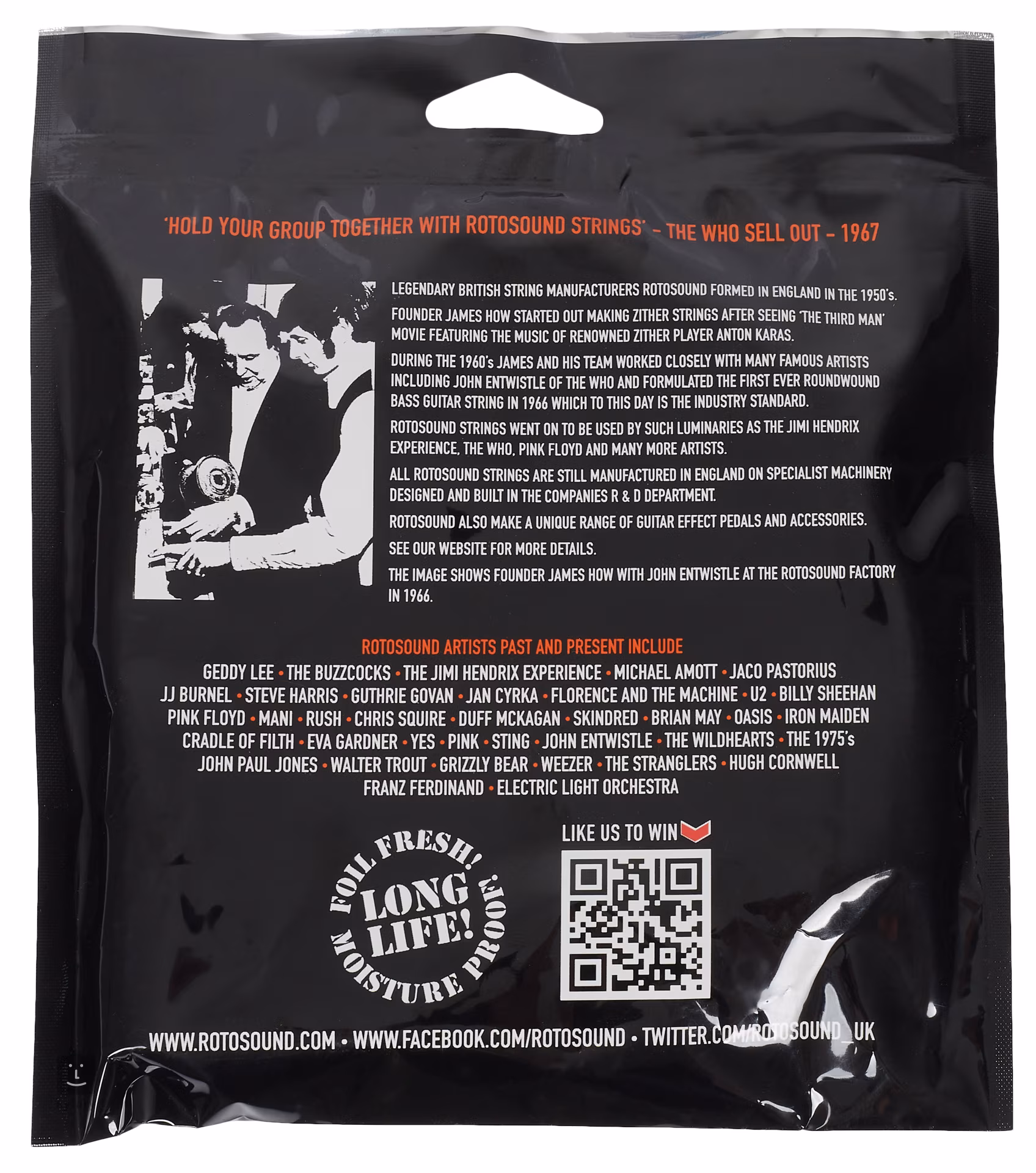 Viele Musikikonen haben sich aufgrund ihrer großartigen Klangeigenschaften auf Rotosound-Saiten verlassen, darunter Noel Redding von Jimi Hendrix' Band, Duff McKagan von Guns N' Roses und John Paul Jones von Led Zeppelin. Roger Waters von Pink Floyd verwendete sie auf dem legendären Album The Dark Side of the Moon und auch auf Nirvanas Nevermind sind sie zu hören.