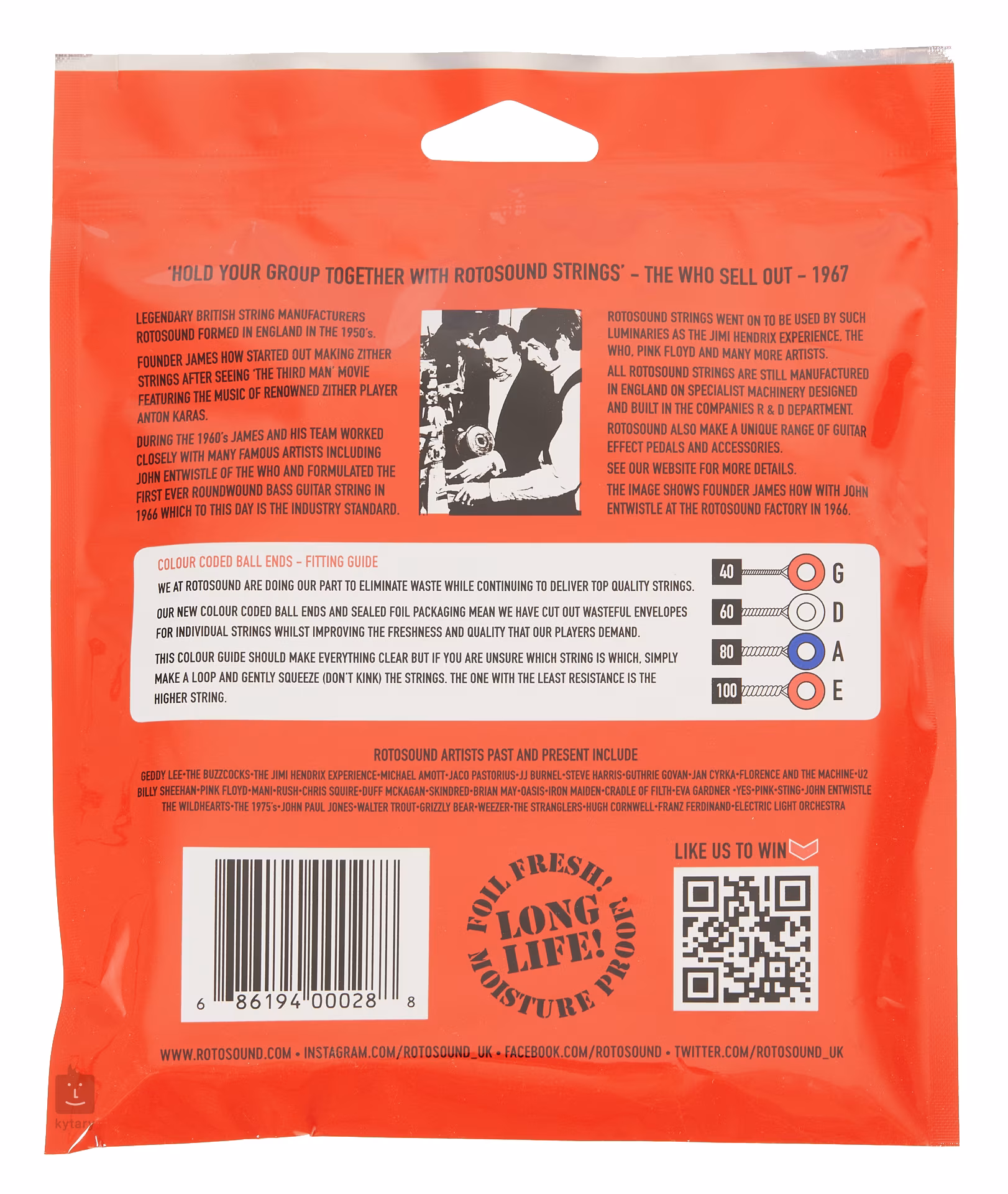 Viele Musik-Ikonen haben sich aufgrund ihrer hervorragenden Klangeigenschaften auf Rotosound-Saiten verlassen, darunter Noel Redding von Jimi Hendrix' Band, Duff McKagan von Guns N' Roses und John Paul Jones von Led Zeppelin. Roger Waters von Pink Floyd verwendete sie auf dem legendären Album The Dark Side of the Moon und auch auf Nirvanas Nevermind sind sie zu hören.