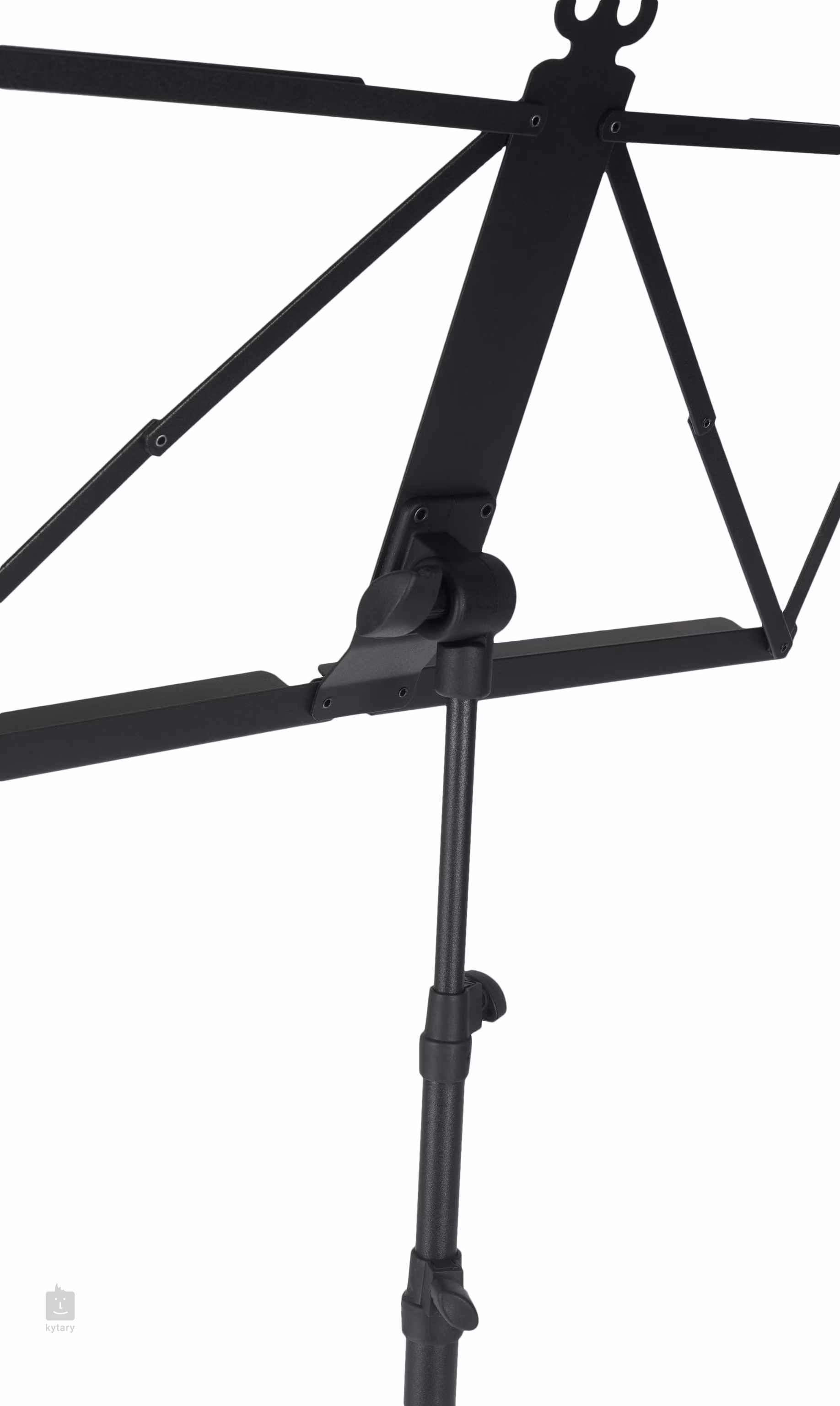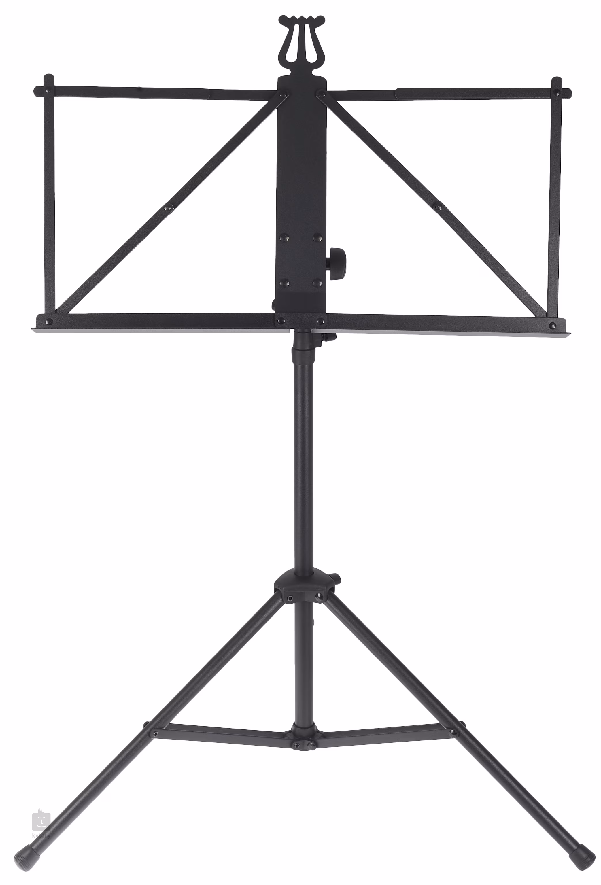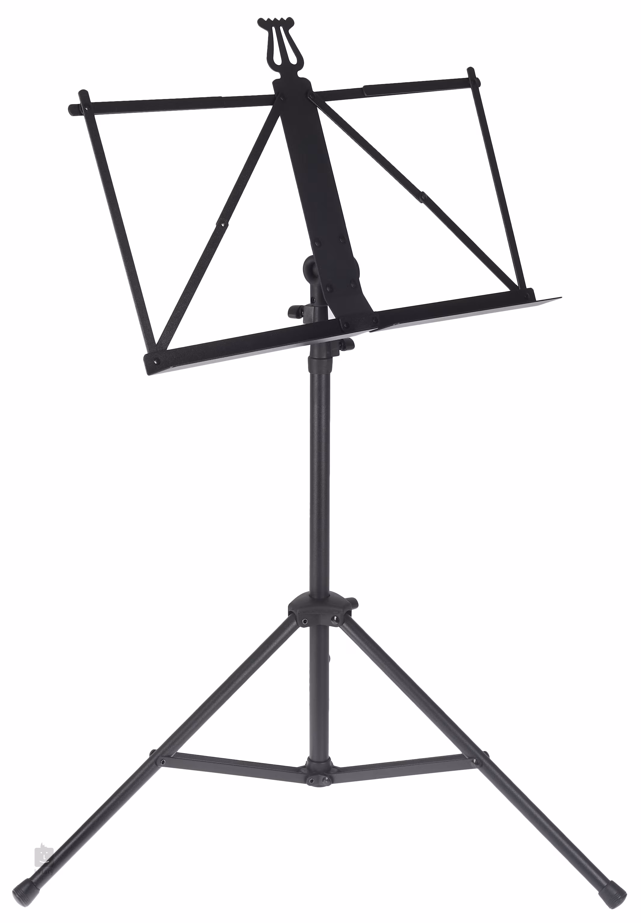 Leichtes Notenpult mit einer dreiteiligen Aluminiumkonstruktion, verstellbarer Höhe (510-1240 mm) und einem klappbaren Notenpult mit den Maßen 465 x 230 mm. Das Pult wird in einer Verpackung geliefert.