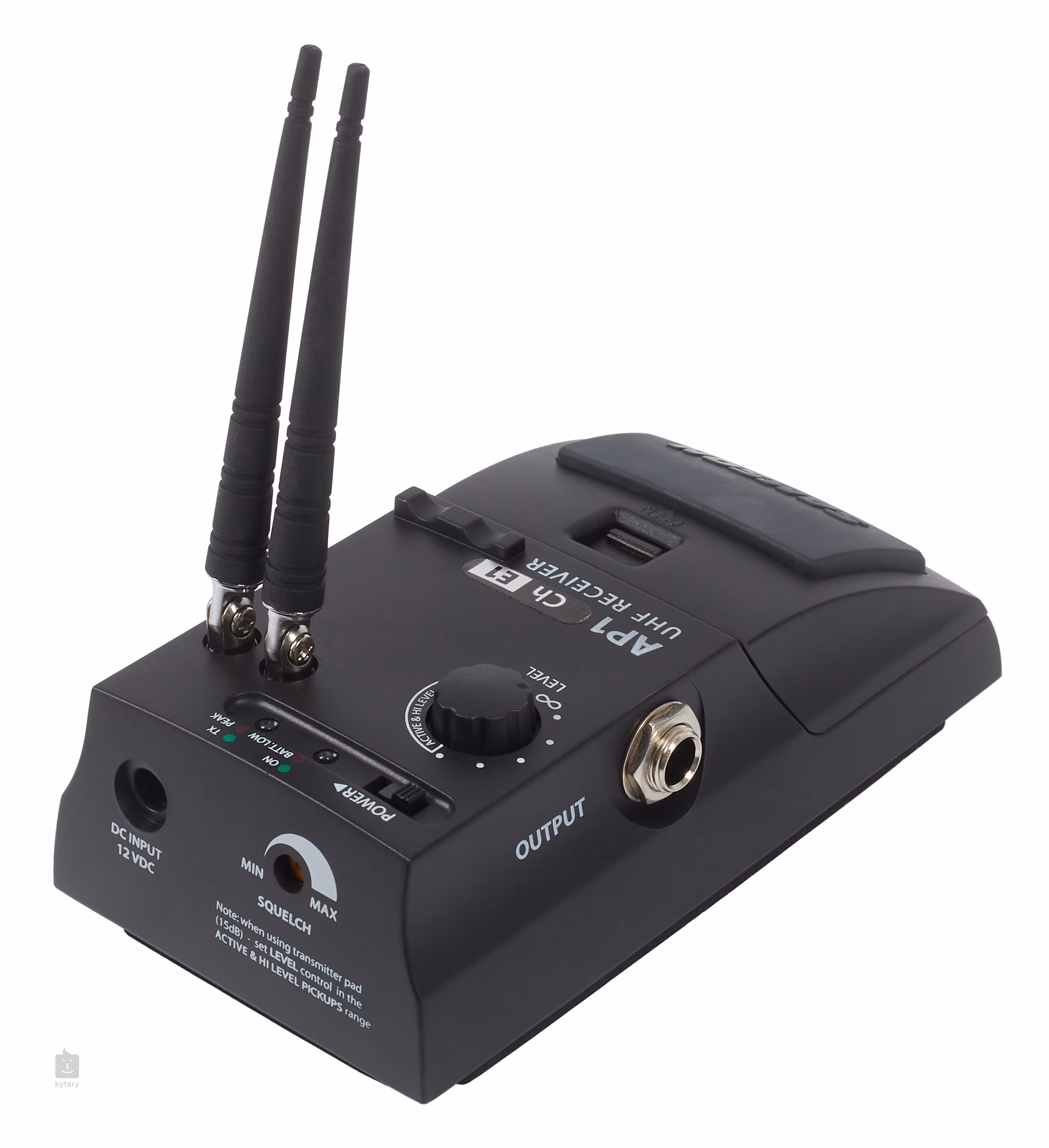 Der AP 1 Pedal-Effekt-Empfänger hat zwei abnehmbare Antennen und passt mit seiner Größe nahtlos in jedes Pedalboard. Mit dem Lautstärkeregler wird das Ausgangssignal reguliert, und separate LEDs zeigen den Übersteuerungs- und Batteriestatus an. Die Stromversorgung erfolgt über eine 9-V-Batterie oder einen optionalen Adapter.