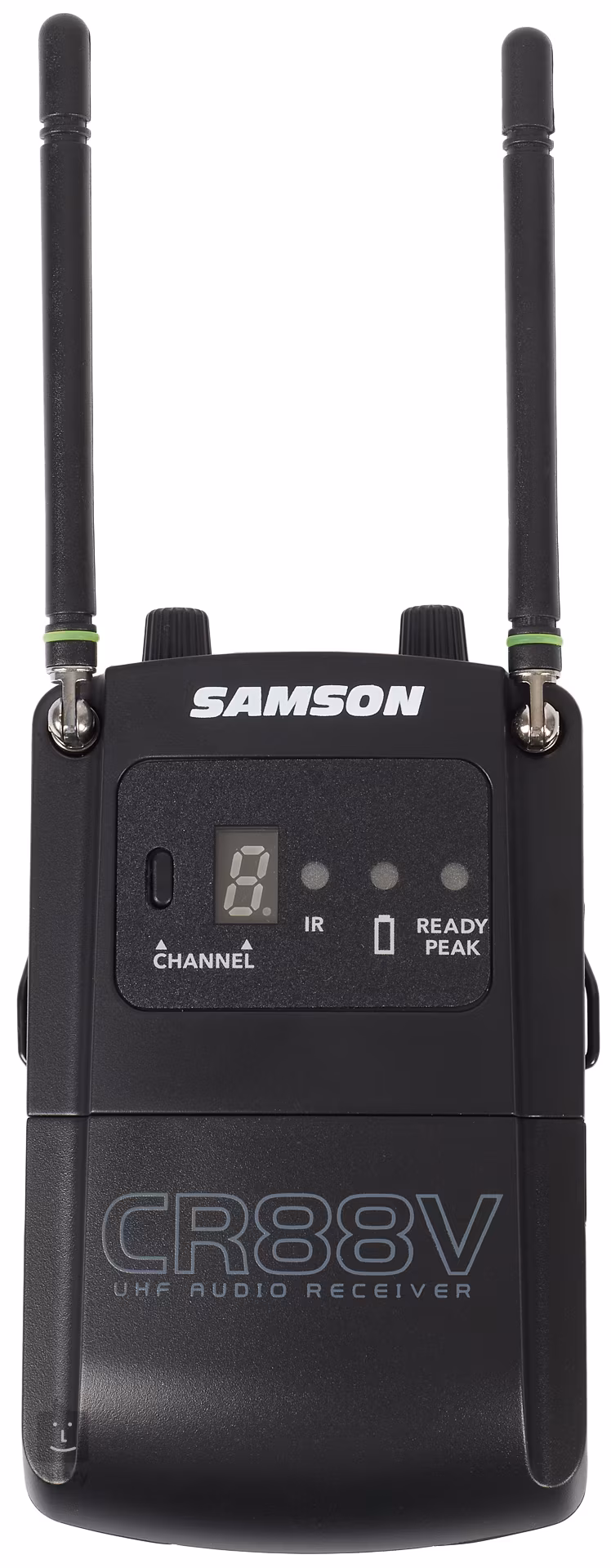 Der CR88V-Empfänger ist mit HD-Camcordern und DSLR-Kameras kompatibel und verfügt über eine wiederaufladbare Lithium-Batterie mit einer Betriebsdauer von bis zu 12 Stunden. Zwei Batterien und ein Ladegerät sind im Lieferumfang enthalten. Der Empfänger ist mit einer LED-Anzeige mit sieben Segmenten, einer Ladeanzeige und einer Batteriestatusanzeige ausgestattet. Sehr praktisch sind die Funktionen "Tone key" und "Auto Mute" zur Unterdrückung von Störgeräuschen bei einem möglichen Signalausfall sowie die "Select"-Funktion zur sofortigen Synchronisation mit dem Sender per Infrarotstrahl. Zusätzlich zur 3,5-mm-Klinkenbuchse verfügt der CR88V über einen unabhängigen Kopfhörerausgang mit eigenem Lautstärkeregler. Der Empfänger kann mit einem Adapter an der Kamera befestigt oder an einen Gürtelclip geklemmt werden.
