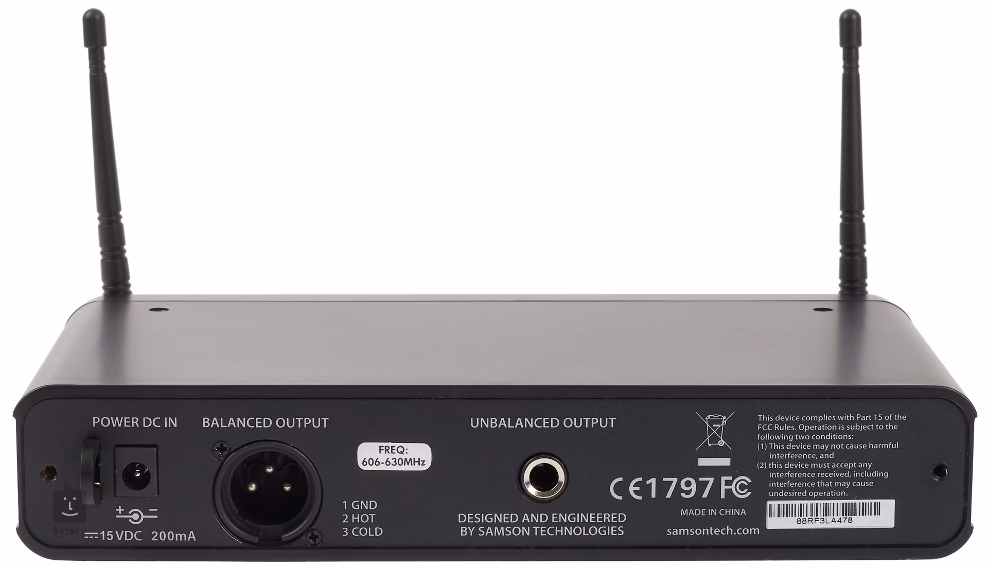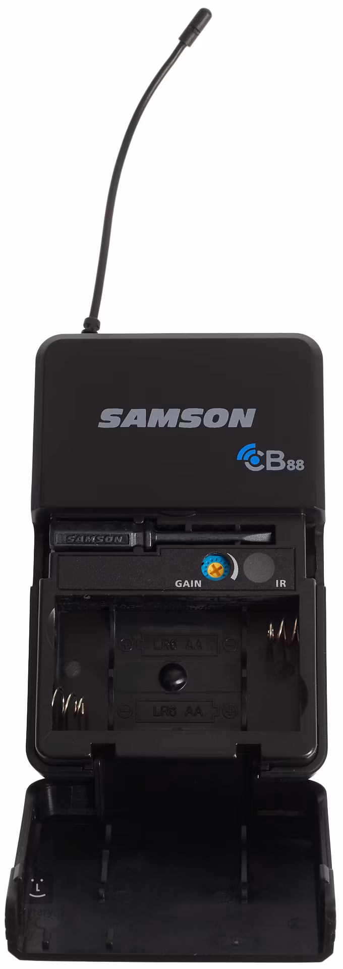 Das drahtlose Concert 88 UHF-System mit Ansteckmikrofon ist eine zuverlässige und kostengünstige Lösung für Moderationen, Vorträge, Präsentationen und ähnliche Veranstaltungen. Der CB88 Sender mit Gürtelclip hat eine Reichweite von 91 Metern und wird mit zwei AA-Batterien mit einer Laufzeit von bis zu 8 Stunden betrieben. Ein verriegelbarer Stecker sorgt für eine sichere Mikrofonverbindung, und eine Mute-Taste dient zur vorübergehenden Unterbrechung des Signals. Der CR88-Empfänger mit Antennendiversity ermöglicht den gleichzeitigen Betrieb von bis zu 16 Systemen. Er ist mit den praktischen Funktionen "Tone key" und "Auto Mute" ausgestattet, um Rauschen bei möglichen Signalausfällen zu eliminieren, und verfügt über einen Infrarotstrahl zur sofortigen Synchronisation mit dem Sender. An der Vorderseite befinden sich abnehmbare Antennen, eine 7-Segment-Anzeige, eine Übersteuerungsanzeige und ein Lautstärkeregler für die symmetrischen (XLR) und unsymmetrischen (6,3 mm Klinke) Ausgänge an der Rückseite. Ein Netzadapter, ein Kabelbaum und ein Rack-Montagesatz sind im Lieferumfang enthalten.