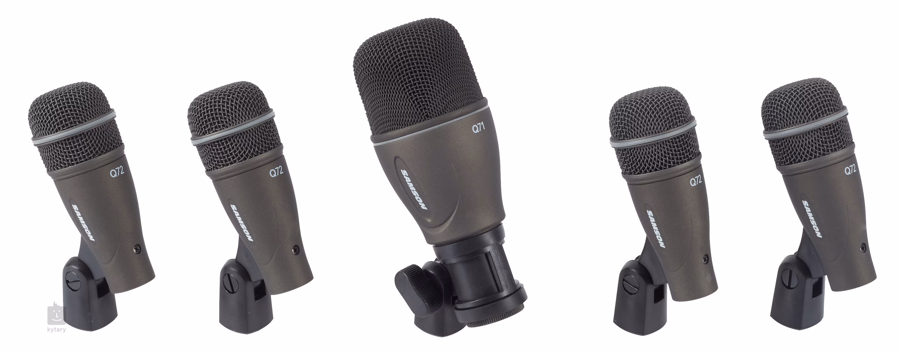 Ein Satz von fünf Schlagzeugmikrofonen, geliefert mit Zubehör und in einem stabilen Transportkoffer. Enthält ein Q71-Mikrofon, das speziell für die Aufnahme der Bassdrum entwickelt wurde, und vier Q72-Mikrofone für die Aufnahme des restlichen Kits. Alle Mikrofone sind so konzipiert, dass sie hohem Schalldruck standhalten.