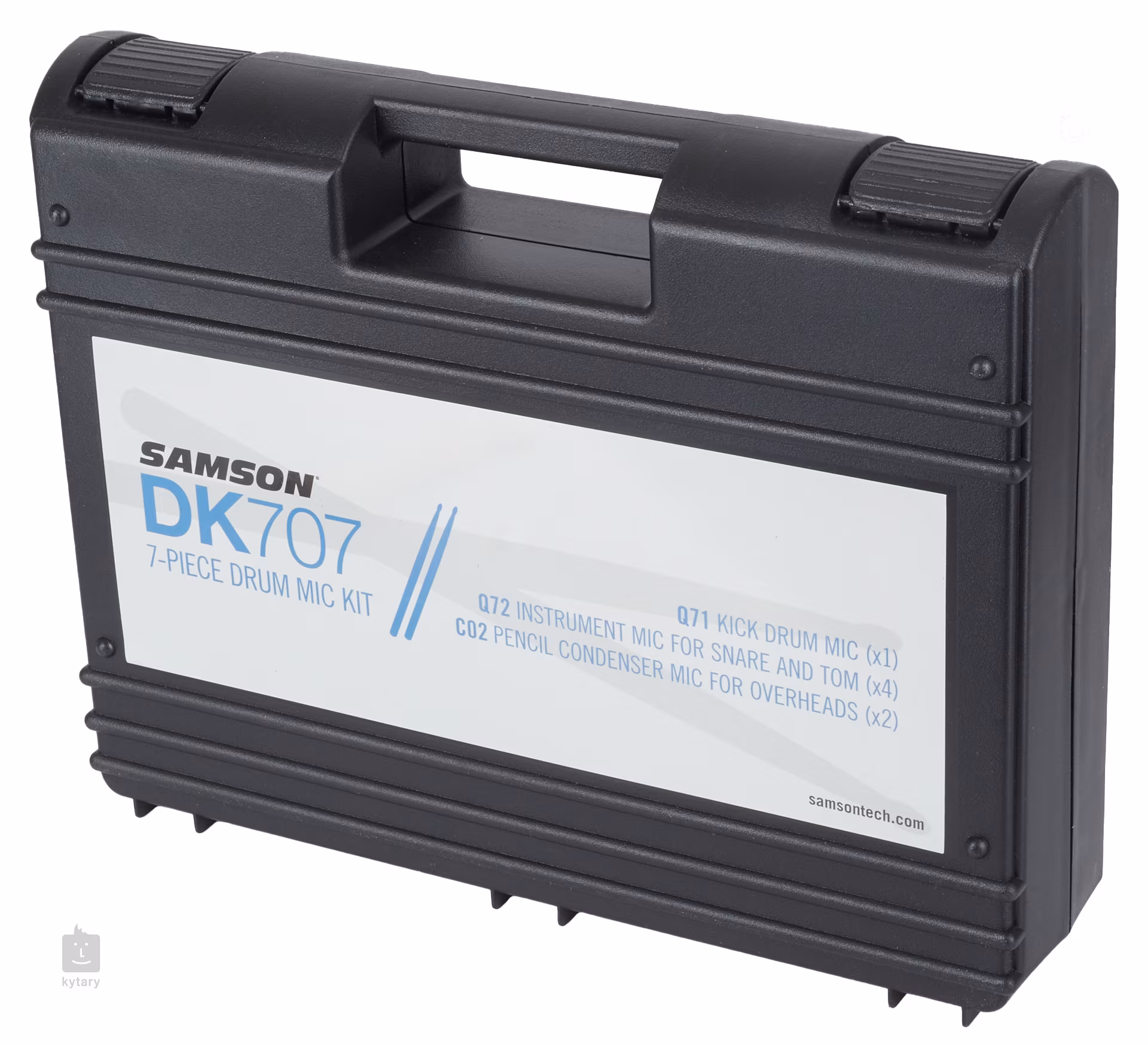 Ein Satz von sieben Schlagzeugmikrofonen, geliefert mit Zubehör und in einem stabilen Transportkoffer. Enthält ein Q71-Mikrofon, das speziell für die Aufnahme der Bassdrum entwickelt wurde, und vier Q72-Mikrofone für die Aufnahme des restlichen Kits. Alle dynamischen Mikrofone sind so konzipiert, dass sie hohem Schalldruck gut standhalten. Für die Aufnahme von Overheads und Umgebungsgeräuschen sind außerdem zwei Kleinmembran-Kondensatormikrofone im Kit enthalten.