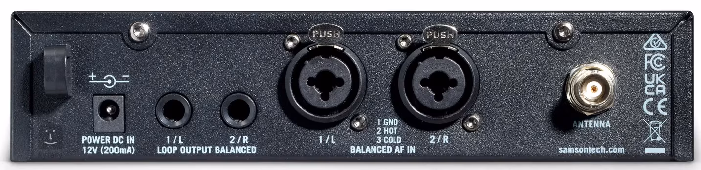 Das Hinzufügen von drahtlosem In-Ear-Monitoring zu Ihrem Setup ist einfach. Der Samson EarAmp-Sender sendet die Audiosignale drahtlos an den Taschenempfänger, wo Sie als Künstler einfach die In-Ear-Kopfhörer anschließen. Dies macht die Verwendung von Bodenmonitoren überflüssig, die zudem sehr empfindlich auf Richtcharakteristiken reagieren, und Sie müssen sich keine Sorgen mehr über störende Rückkopplungen machen.